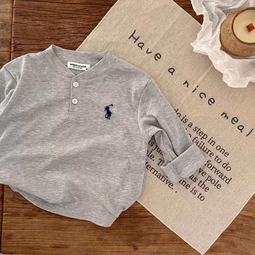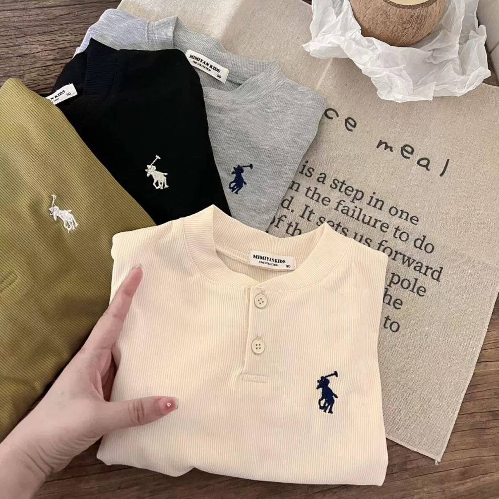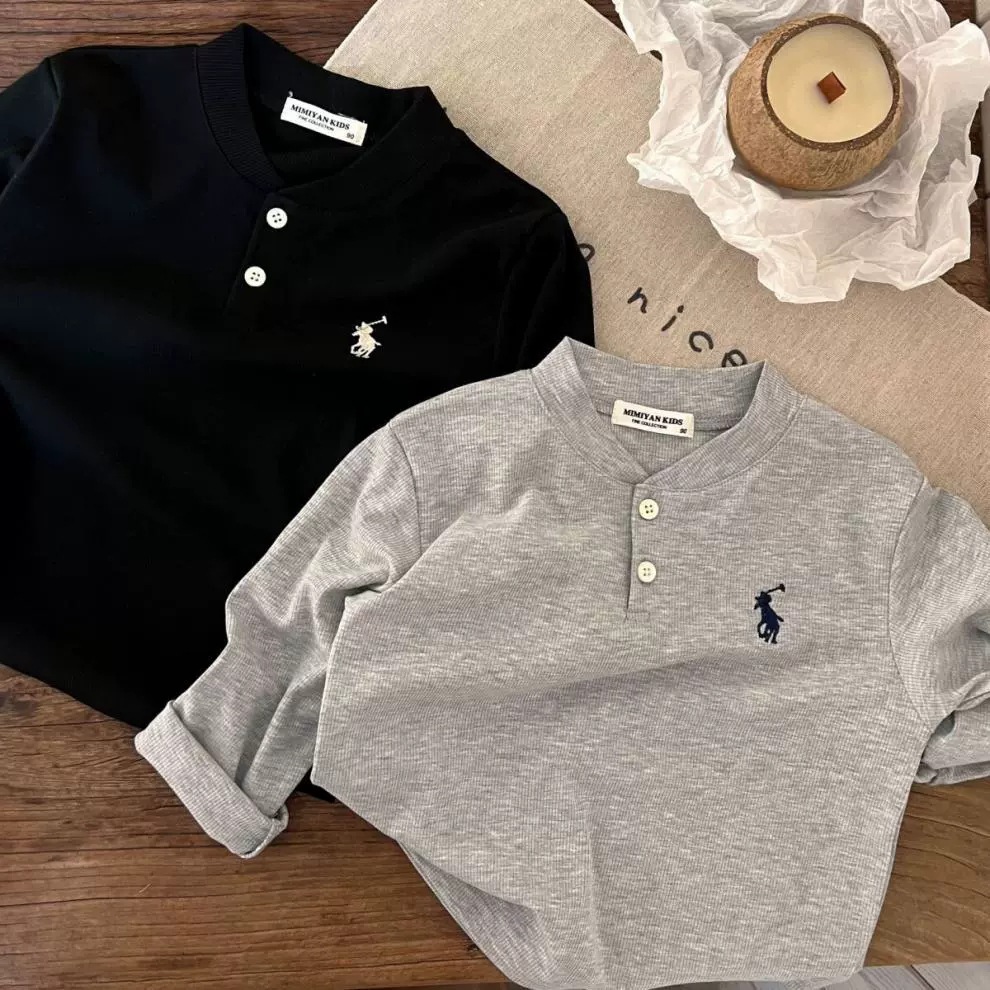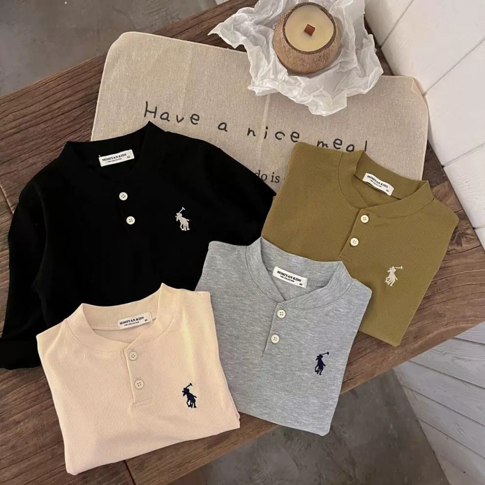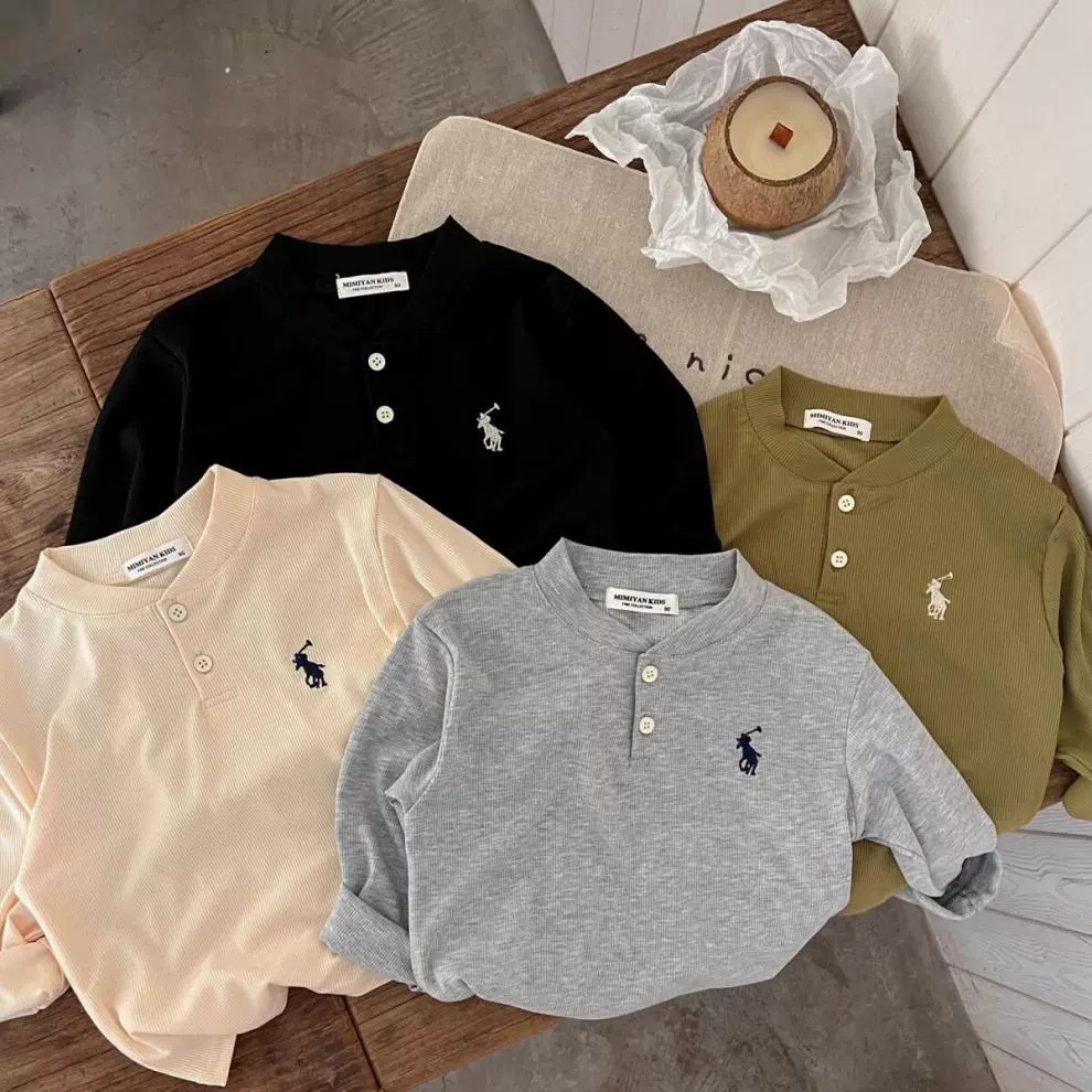 소년 소녀 봄과 가을 긴 소매 폴로 칼라 티셔츠 2024 새로운 아기 가을 한국 단색 잎베이스 셔츠스토어 가기