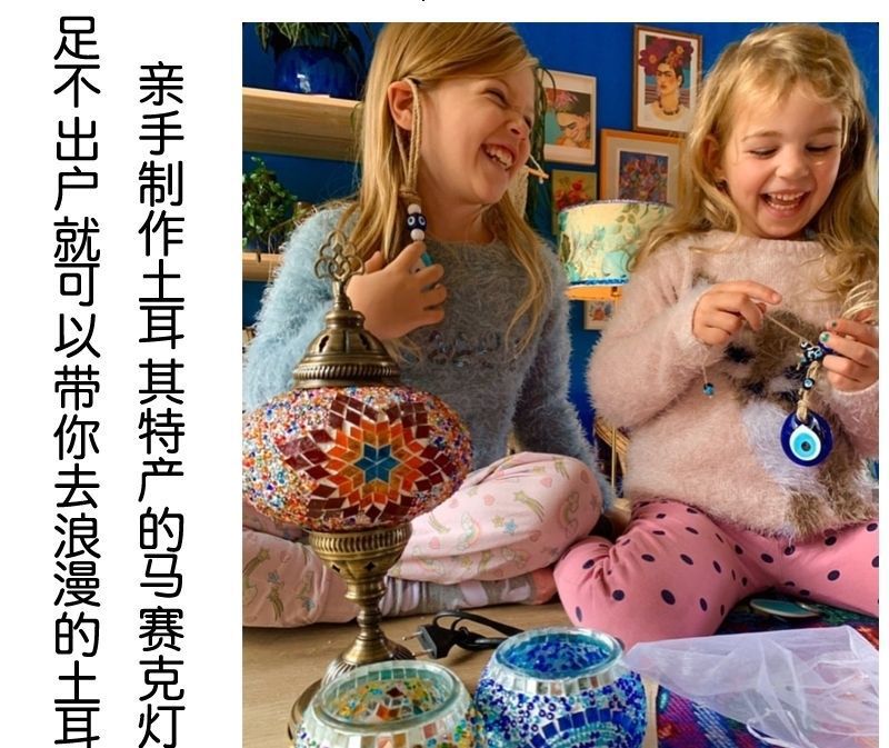수제 DIY 터키 모자이크 유리 램프 소재 가방 부모-자식 어린이 커플 대화 형 선물 침대 옆 테이블 램프스토어 가기