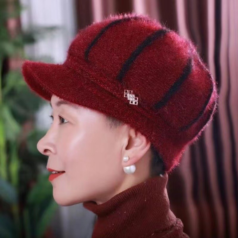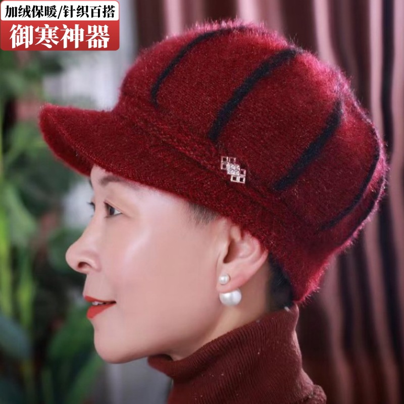중년 및 노인 모자 여성의 겨울 기모 두꺼운 감기보호 양모 모자 엄마와 할머니를위한 따뜻한 니트 모자