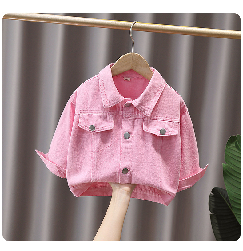 소녀 데님 코트 봄과 가을 서양식 유행 어린이 탑 핑크 가을 2024 새로운 아기 온라인 빨간 옷스토어 가기