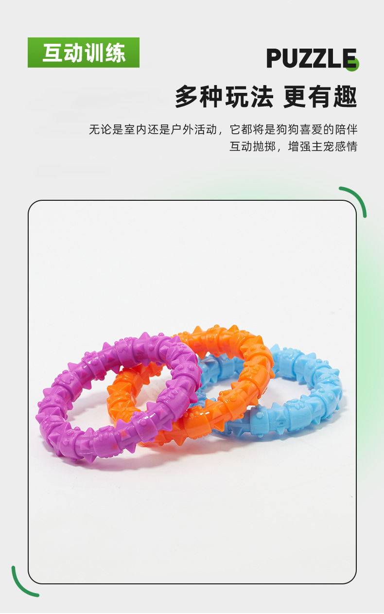 작은 가시 반지 장난감 애완 동물 용품 공장 도매 회사 개 칫솔 연삭 스틱 개 놀이 장난감스토어 가기