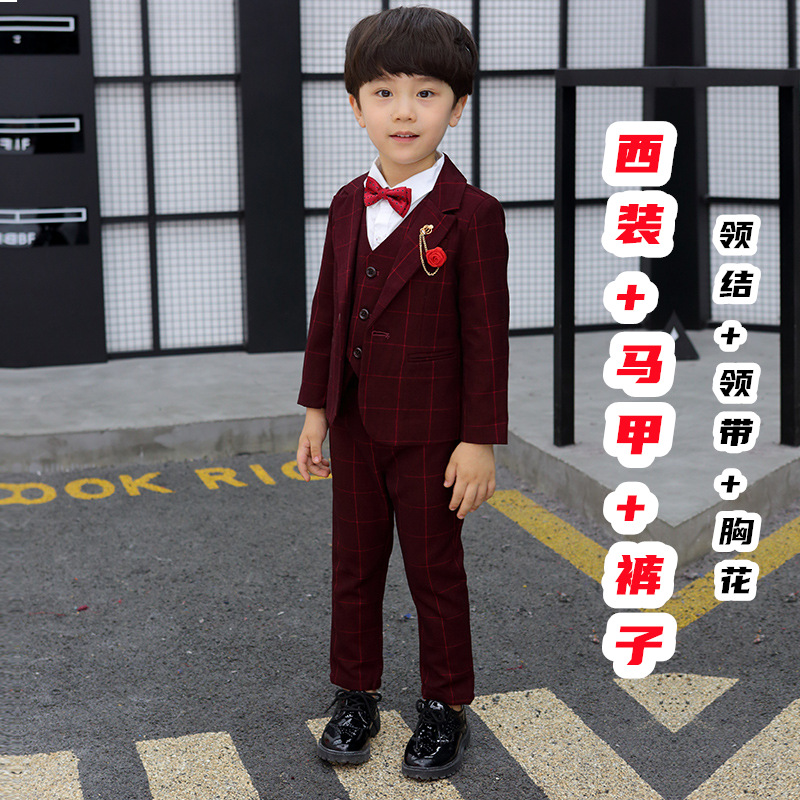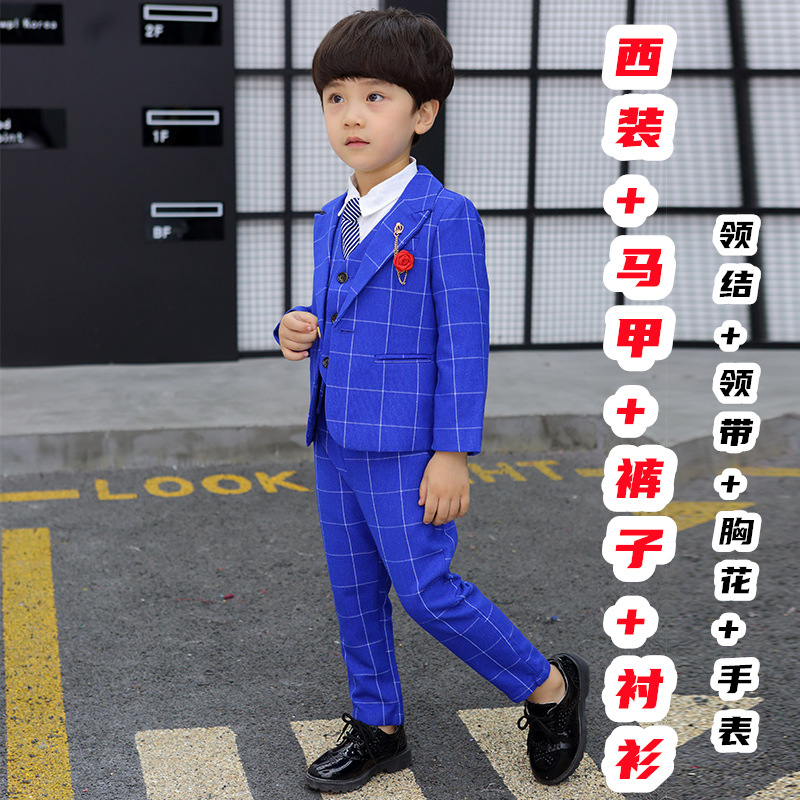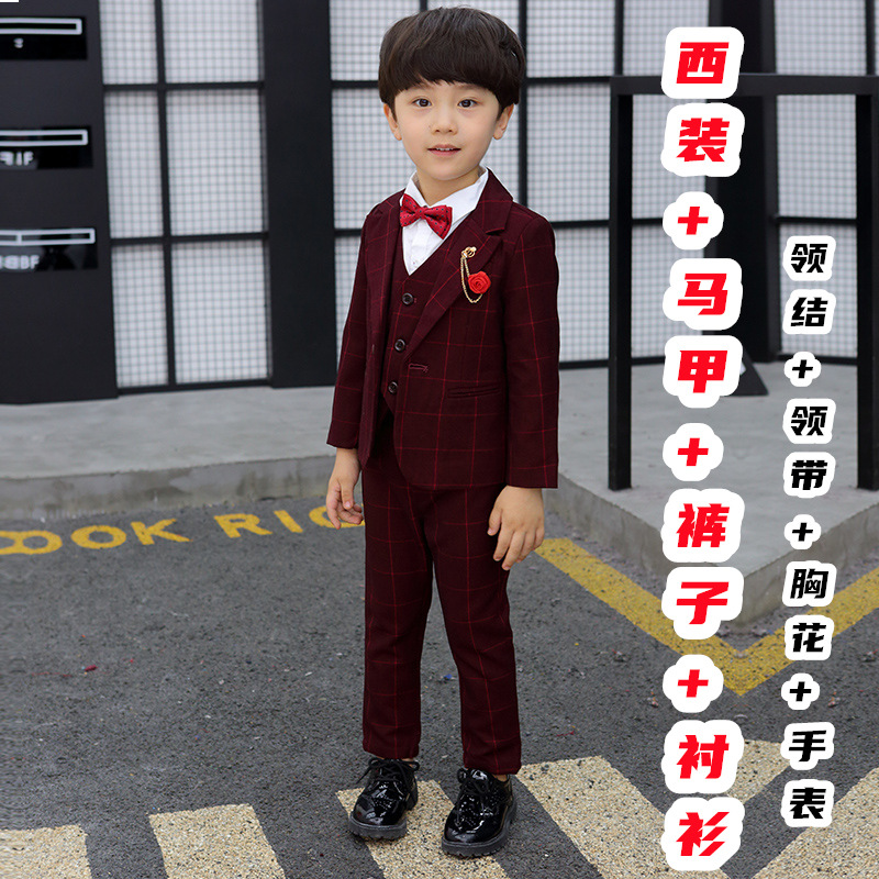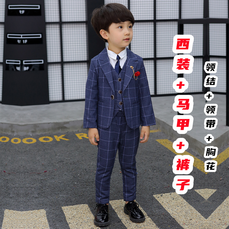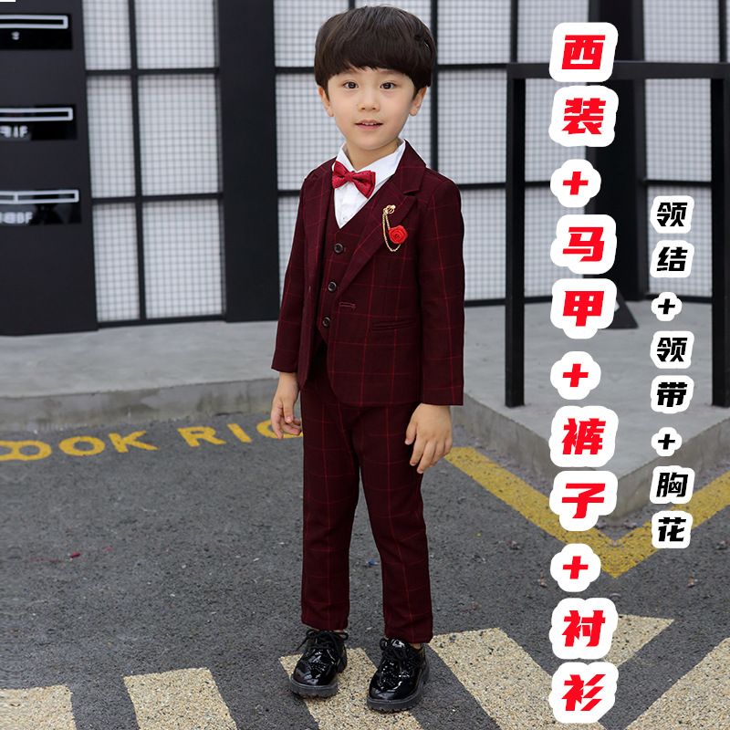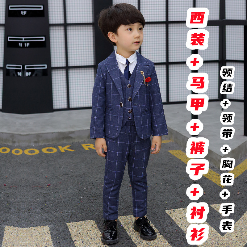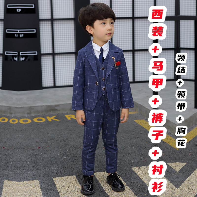 어린이 세트 세트 꽃 소녀 영국 호스트 공연 세트 소년 중 큰 소년 잘생긴 격자 세트 가을스토어 가기