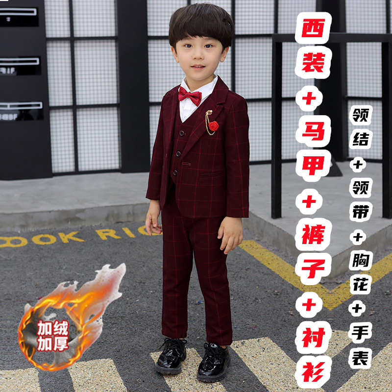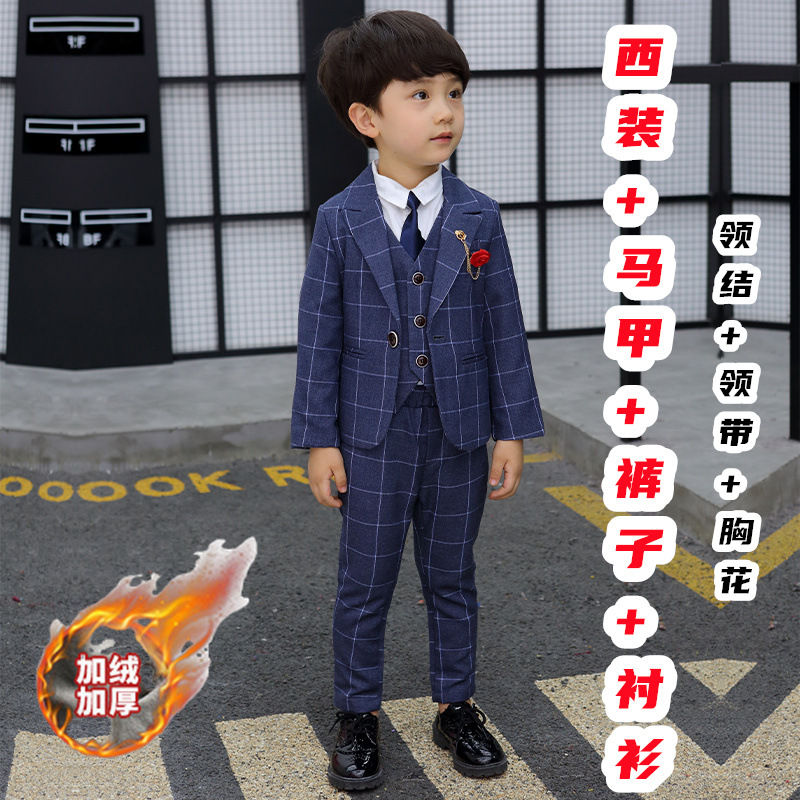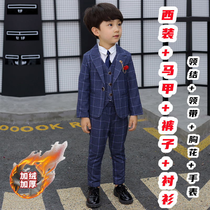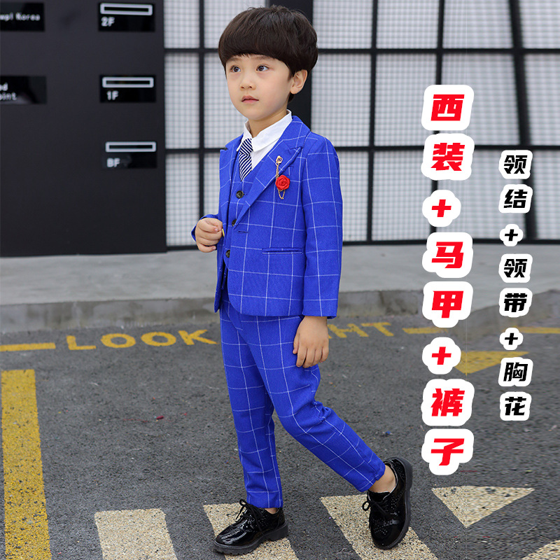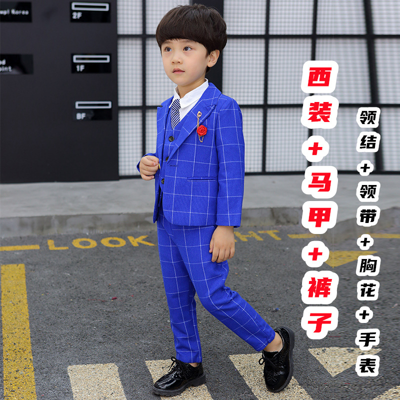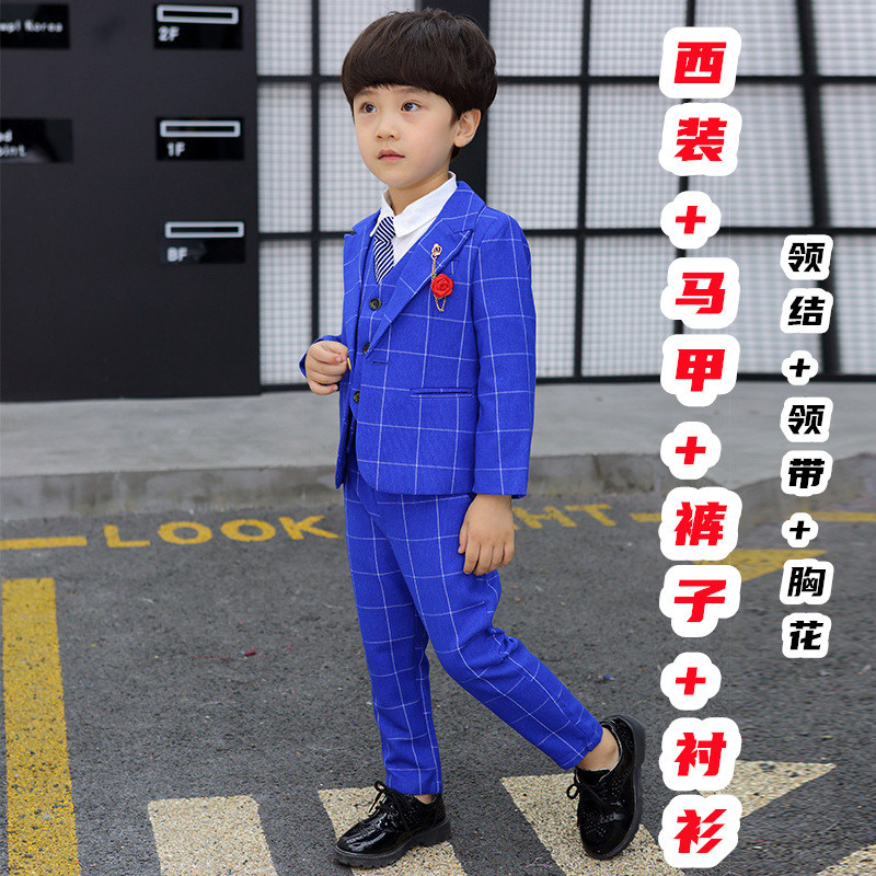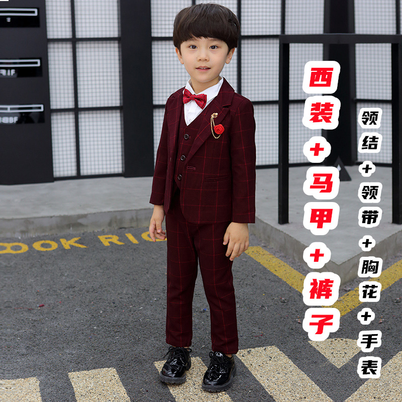 어린이 세트 세트 꽃 소녀 영국 호스트 공연 세트 소년 중 큰 소년 잘생긴 격자 세트 가을스토어 가기