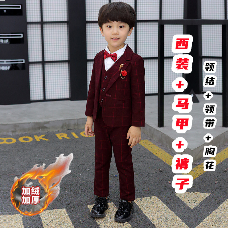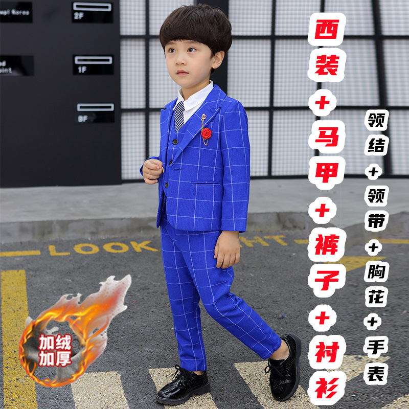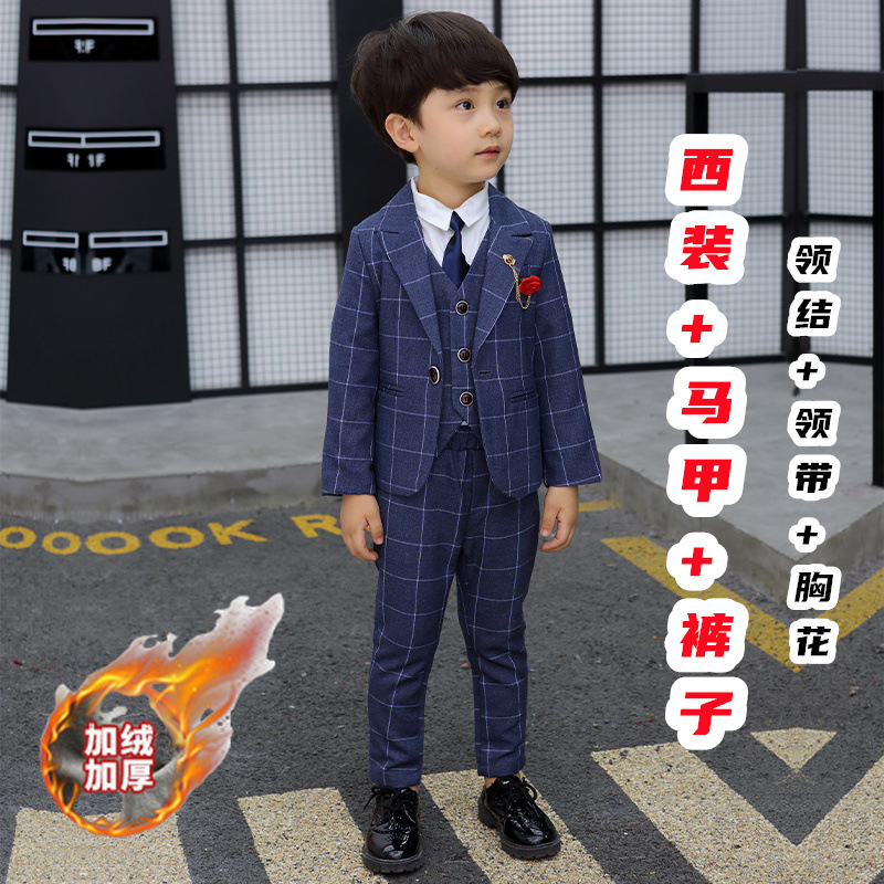 어린이 세트 세트 꽃 소녀 영국 호스트 공연 세트 소년 중 큰 소년 잘생긴 격자 세트 가을