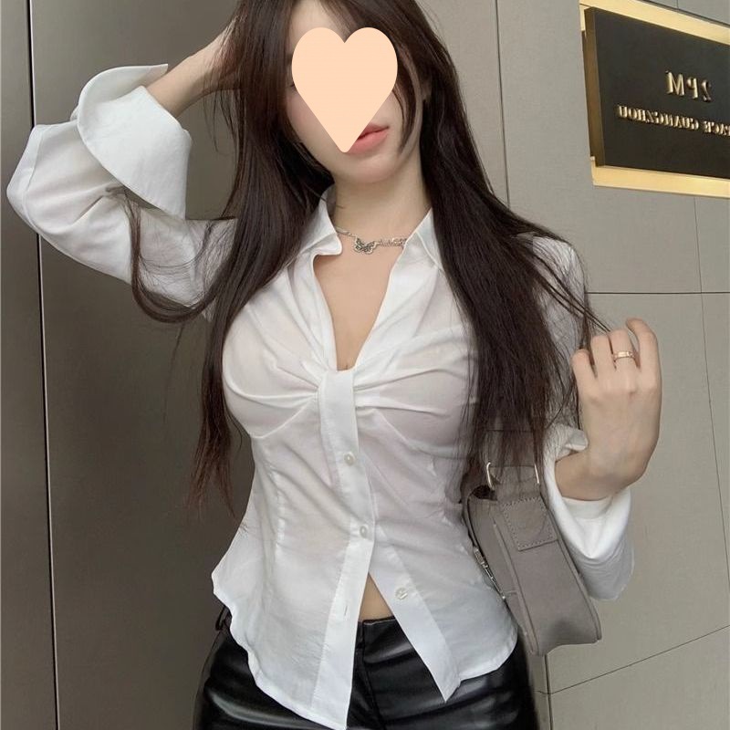 화이트 칼라 긴팔 셔츠 여성용 가을과 여름 프랑스 스타일의 세련된 셔츠 슬림 핏 슬리밍 디자인 틈새 탑