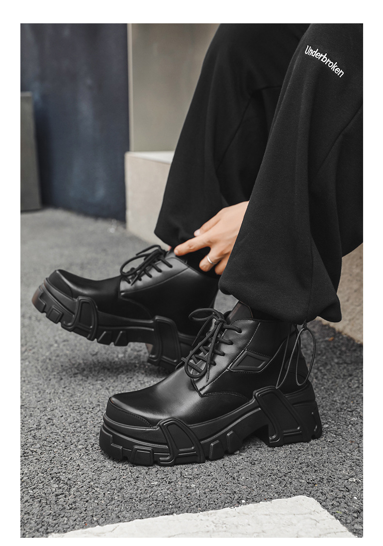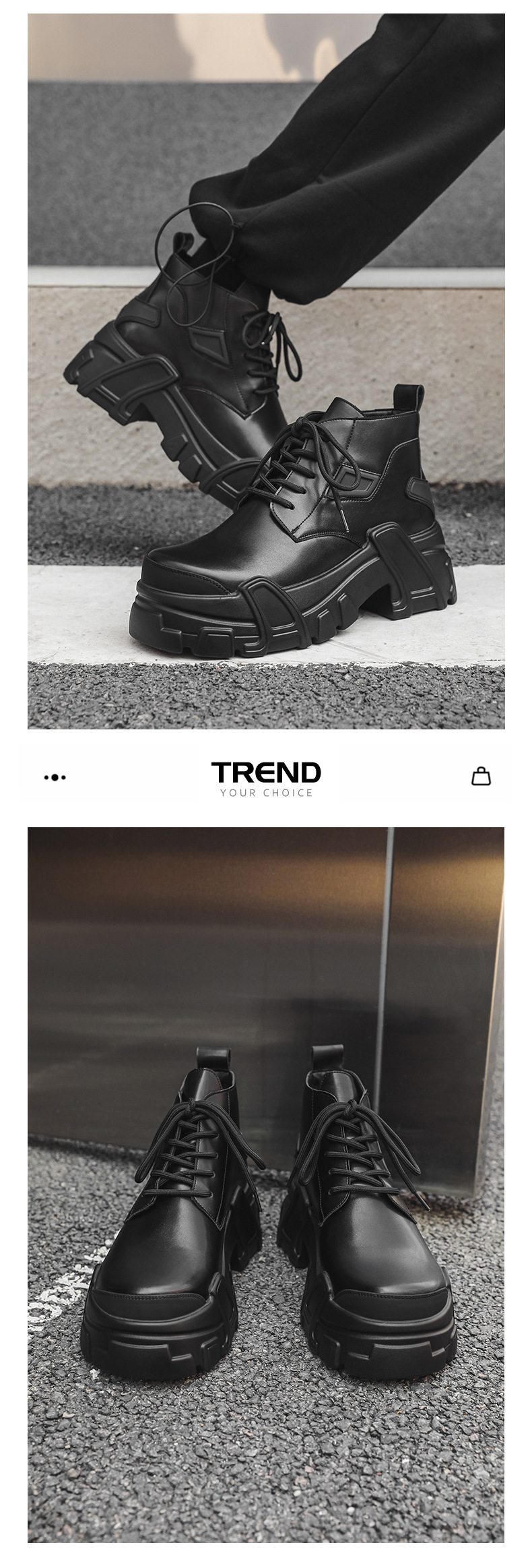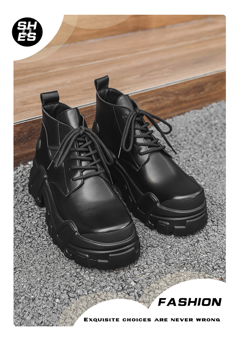 2024 년 가을 새로운 남자 통근 빅 헤드 캐주얼 가죽 신발 하이 엔드 영국 스타일 높이 라운드 발가락 올 매치 마틴 부츠스토어 가기