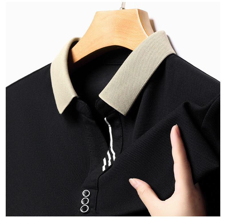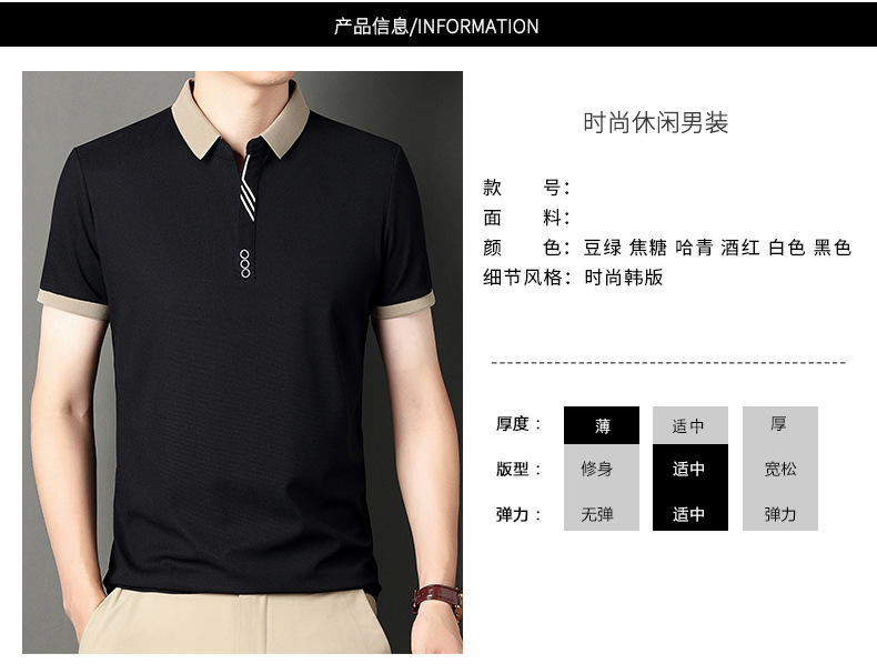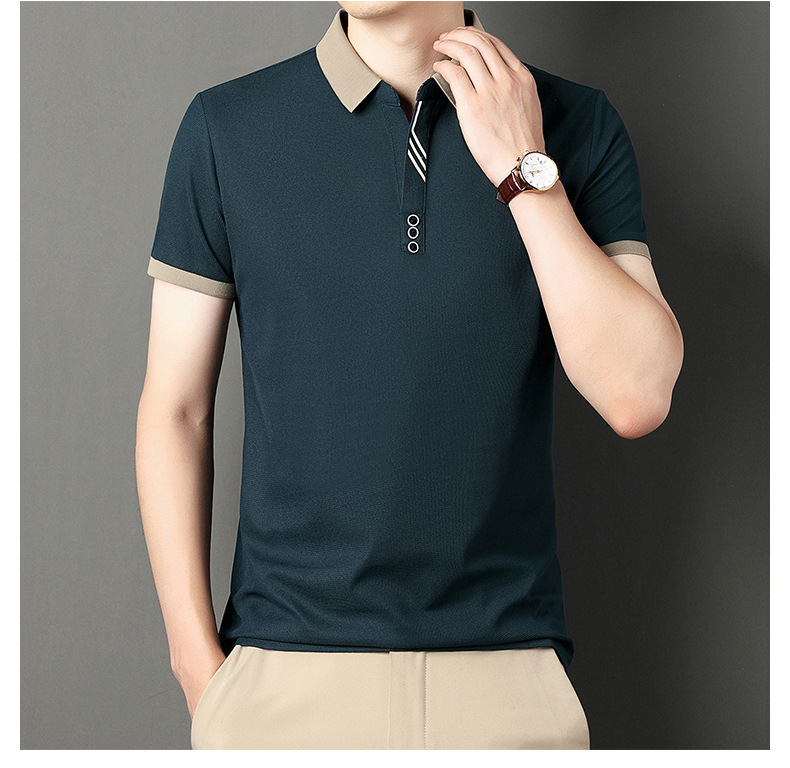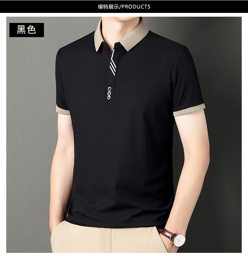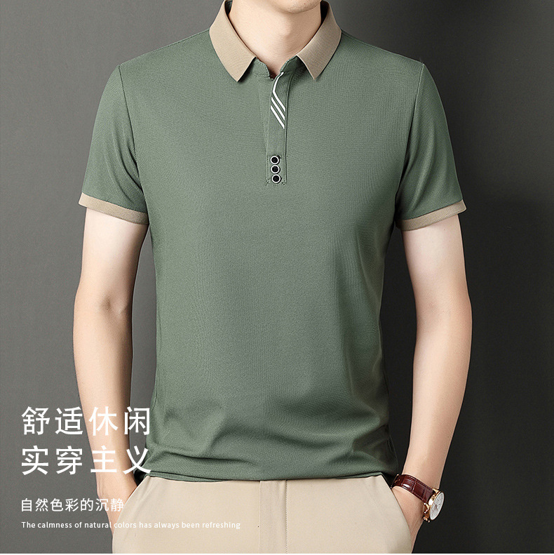 2024 여름 새로운 남성 티셔츠 아이스 실크 캐주얼 단색 비즈니스 옷깃 작은 V 짧은 소매 폴로 셔츠 아빠 패션 브랜드스토어 가기