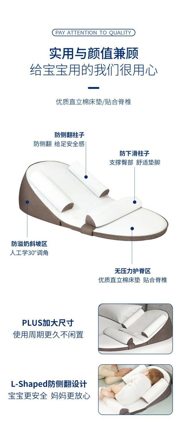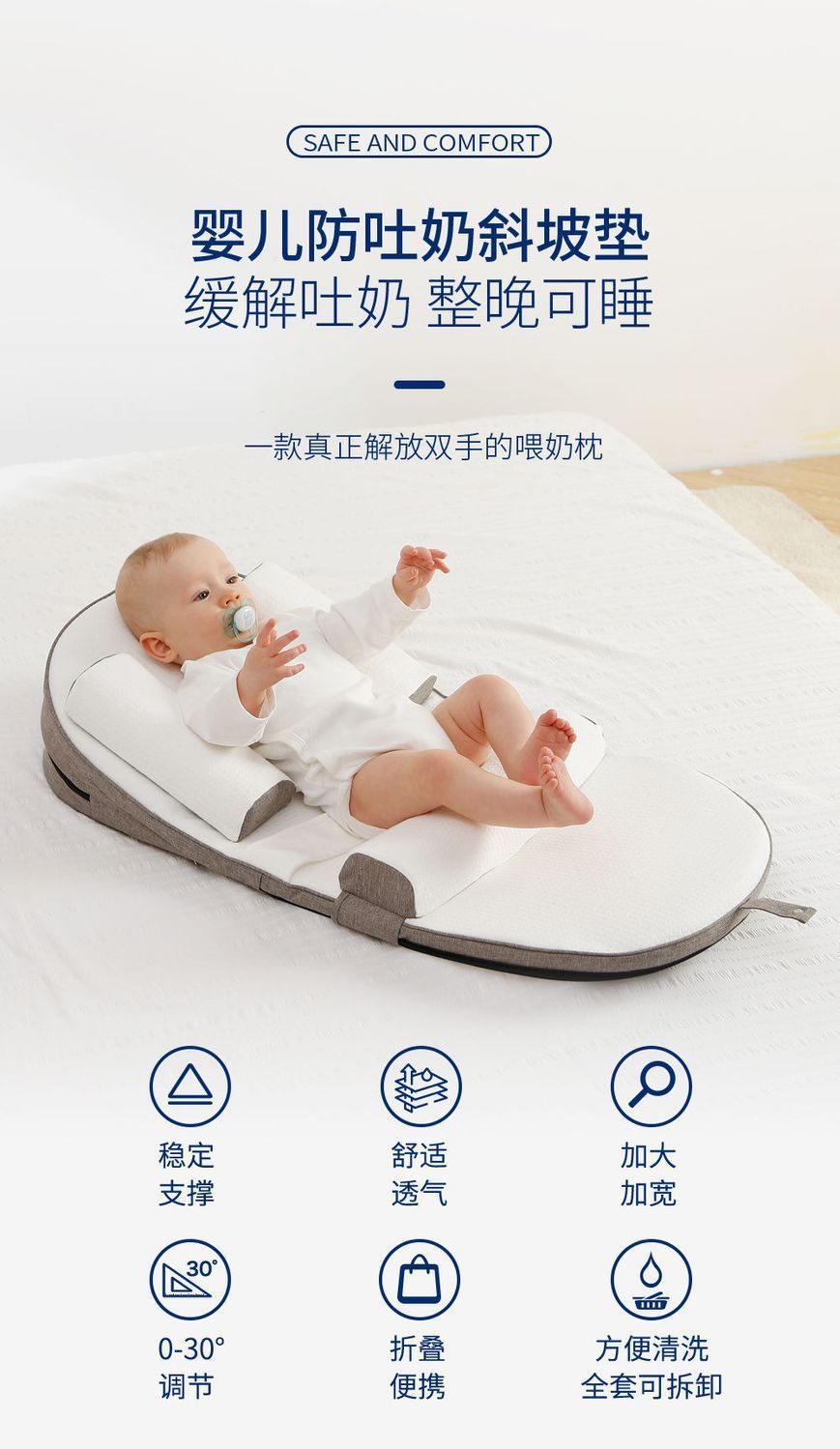 防吐奶斜坡枕婴儿a类防溢奶呛奶躺喂枕哺乳枕躺靠垫排气喂奶神器