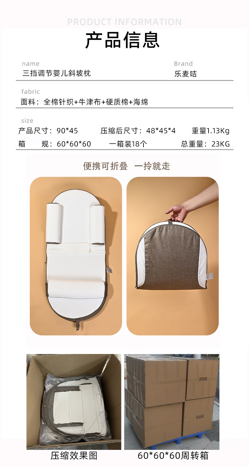 工厂直供亚马逊热销婴儿斜坡枕记忆棉婴儿防吐奶斜坡枕可移动躺椅