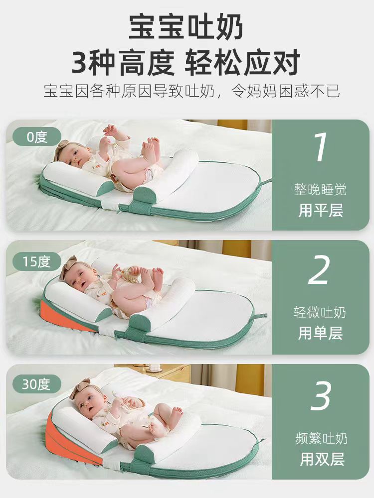 青岛厂家直销婴儿斜坡枕新生儿防呛奶溢奶神器宝宝床中床批发定制