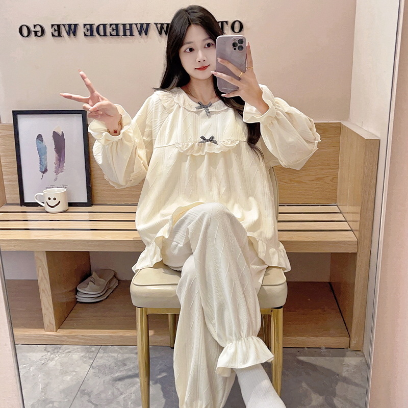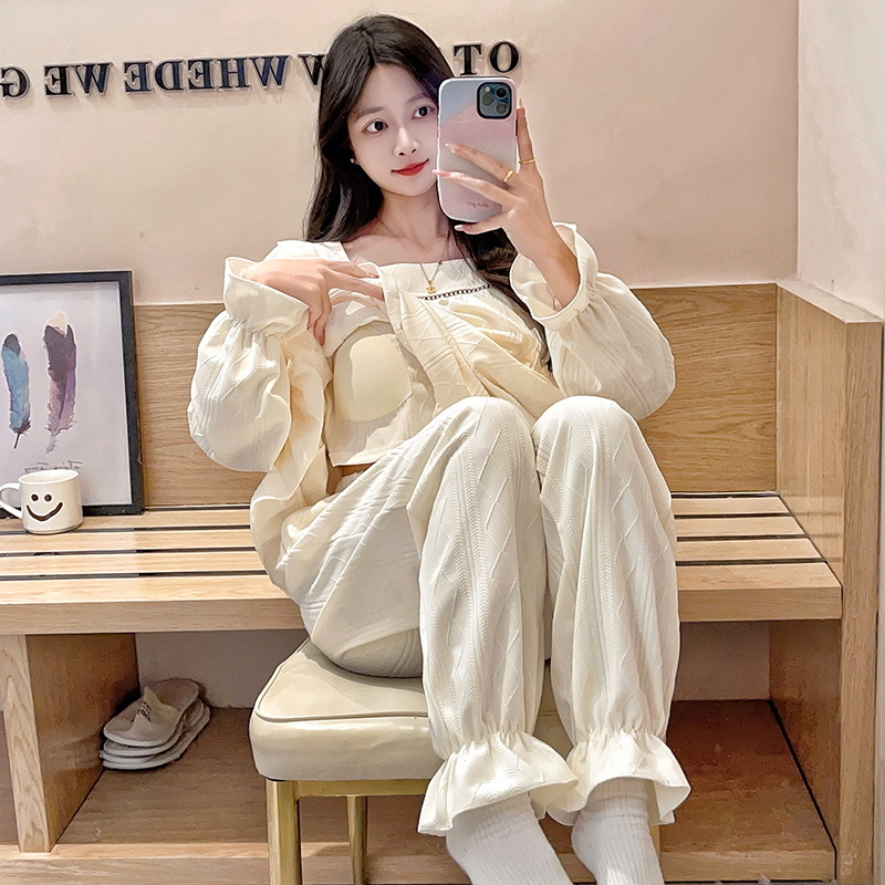 2025년 신상 여성용 봄, 가을 잠옷, 가슴 패드 포함, 야외에서 착용 가능, 루즈한 긴팔, 달콤하고 귀여운 여학생 홈웨어스토어 가기