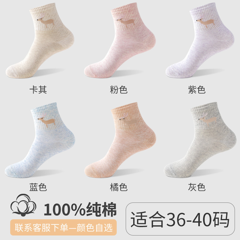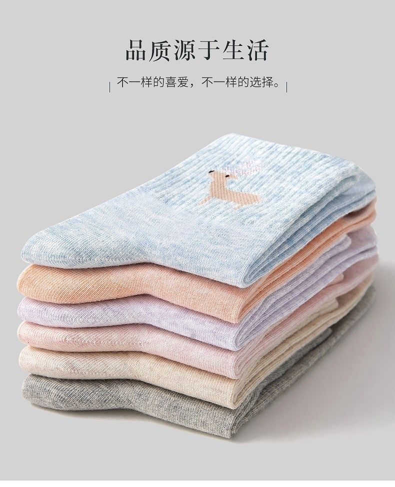 Longsha 가을과 겨울 순면 양말 여성의 중간 튜브 냄새 방지 및 땀 흡수 통기성 모든 면화 일본 귀여운 긴 튜브 여성용 양말 캐주얼 양말