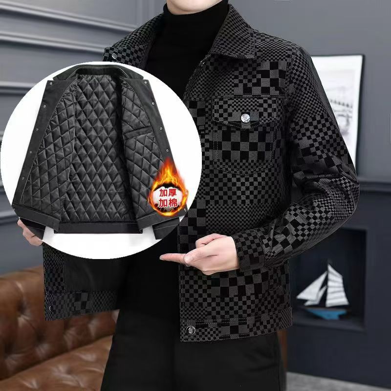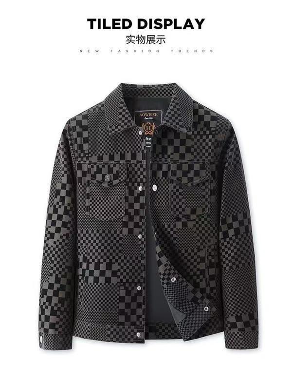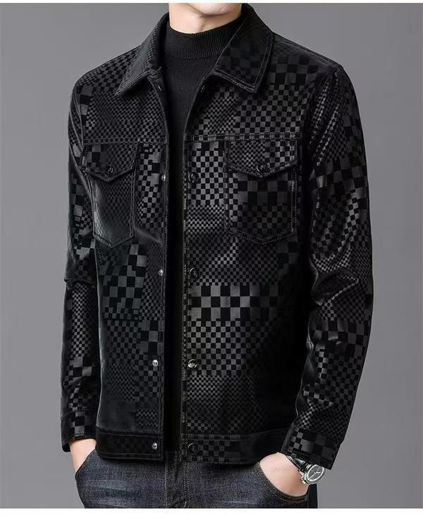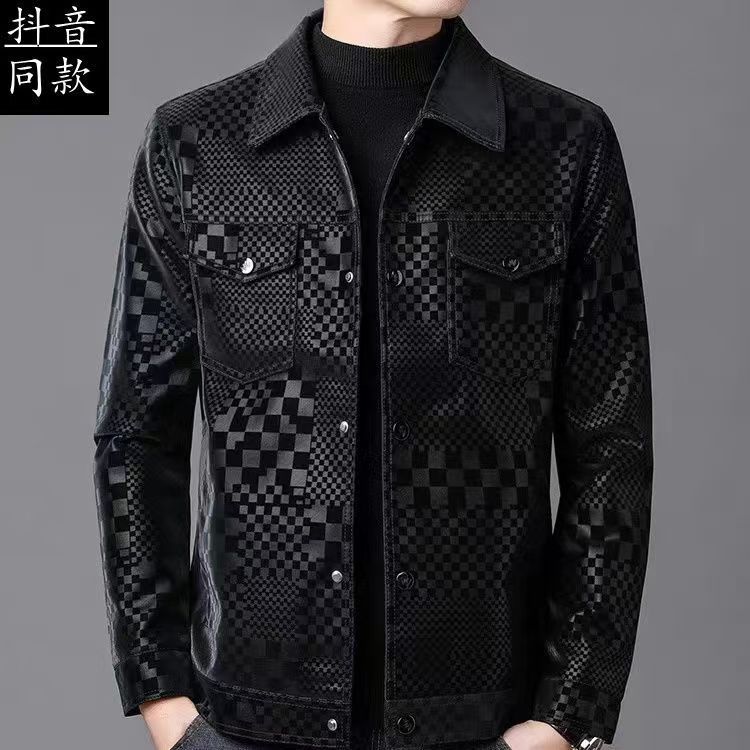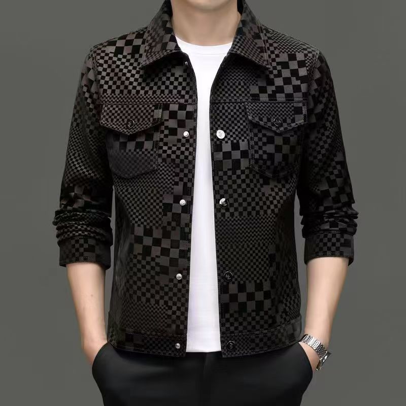 남성 패션 남성 자켓 봄과 가을 옷깃 패션 가죽 자켓 남성 캐주얼 자켓 플레이드 패션 톱 한국어스토어 가기