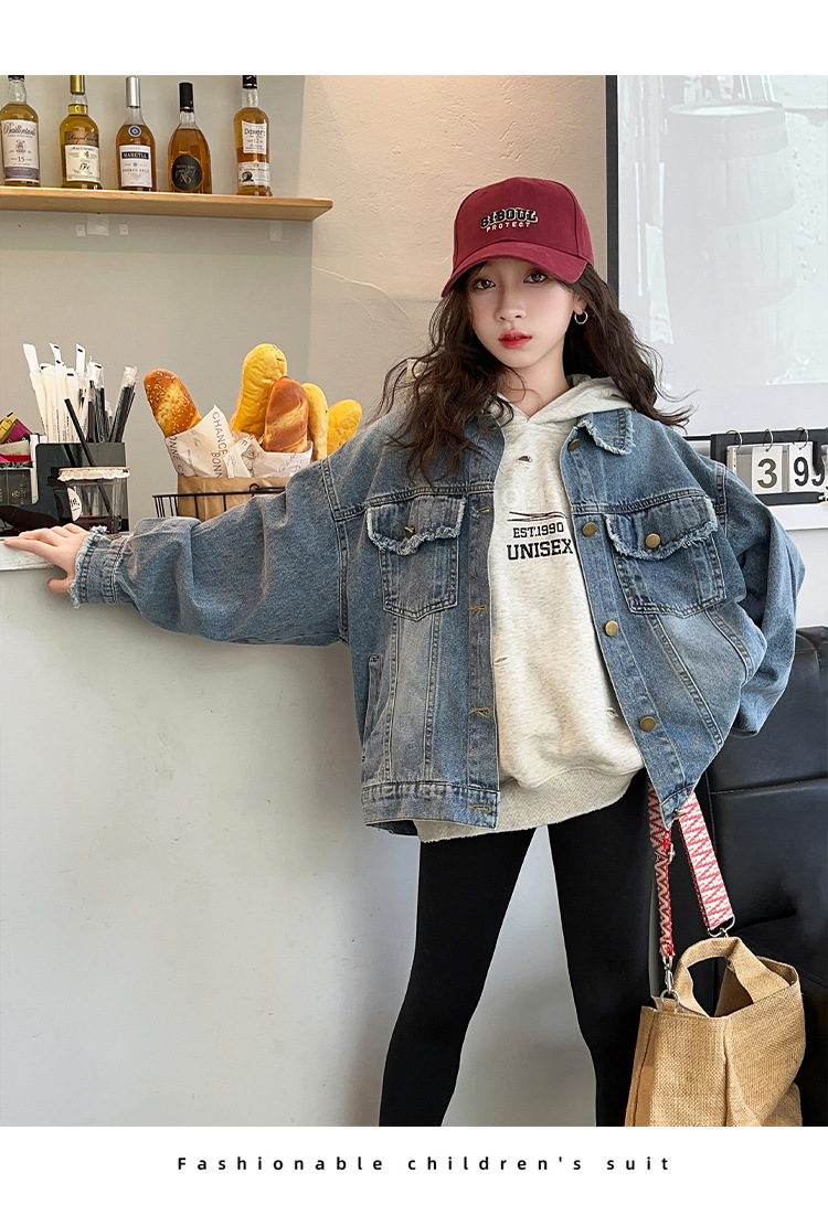 소녀 2024 모피 수염 데님 코트 가을 봄과 가을 한국 스타일 서양식 소녀 탑 소녀와 어린이 코트스토어 가기