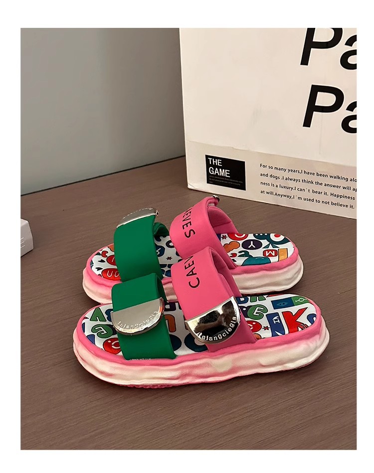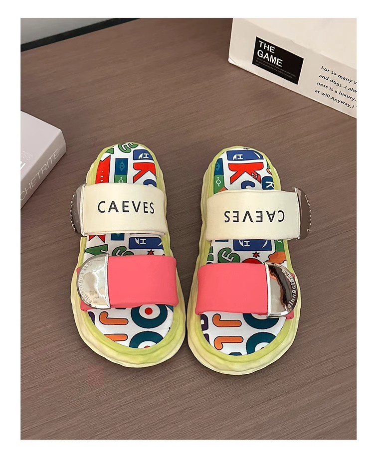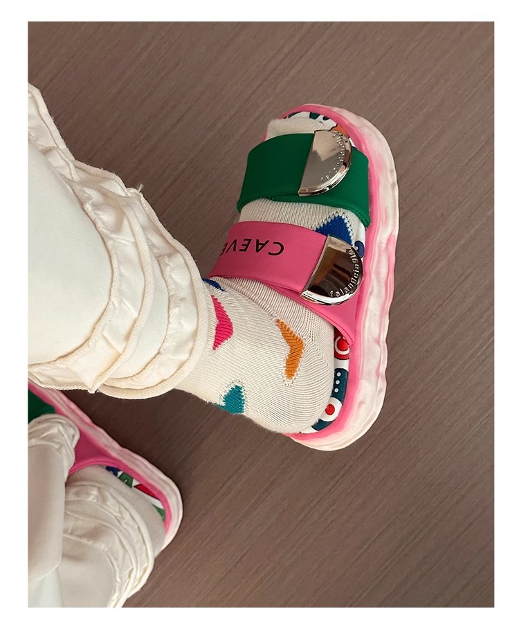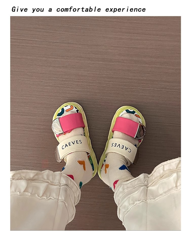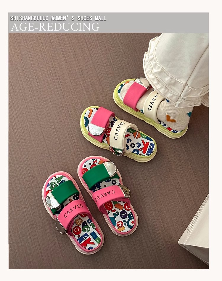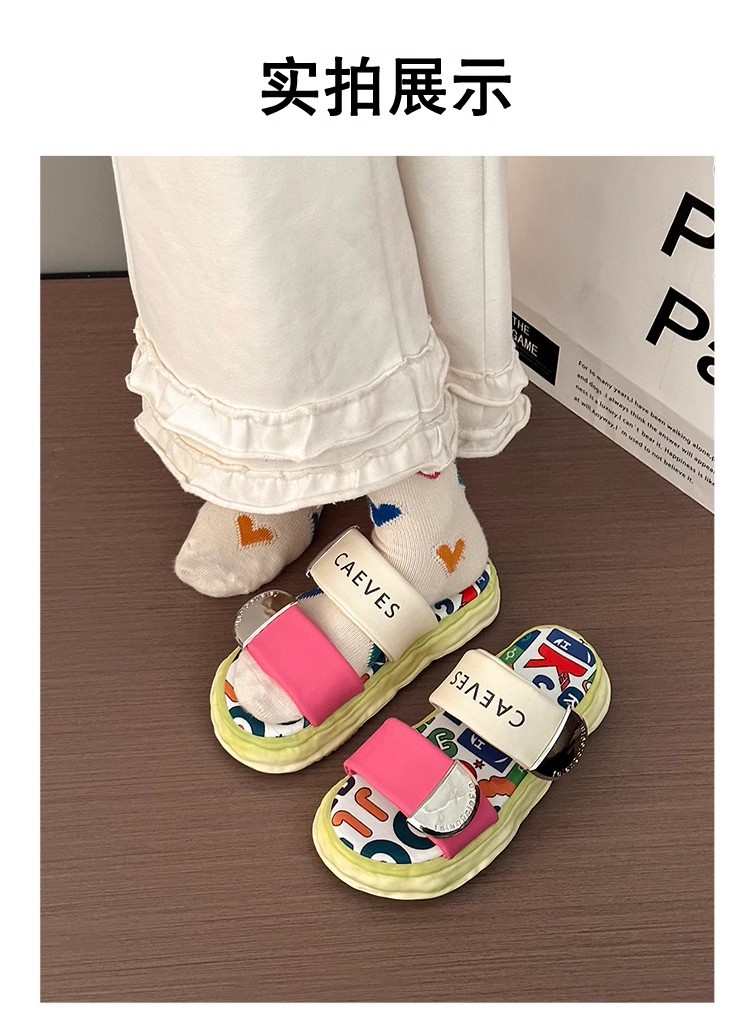 귀엽고 스타일리쉬한 그래피티 디자인 여성용 슬리퍼, 2026년 여름 신상 인터넷 인기 캐주얼 두꺼운 밑창 플랫폼 벨크로 샌들스토어 가기