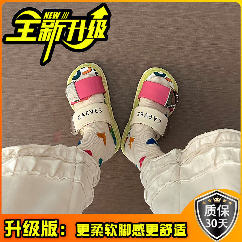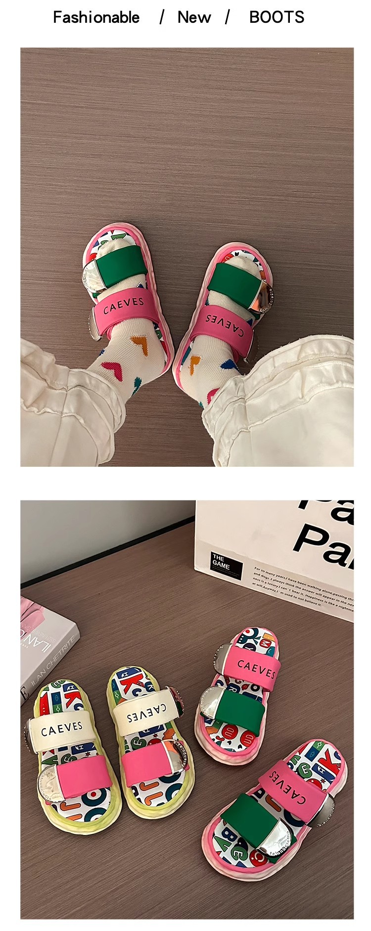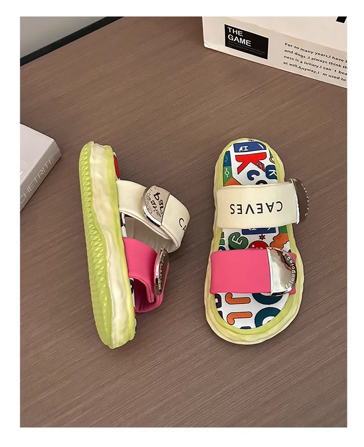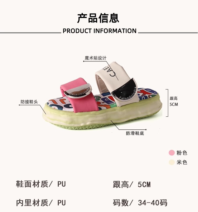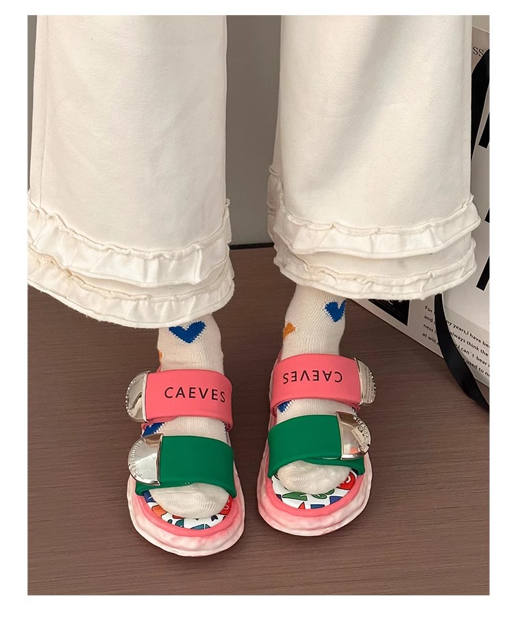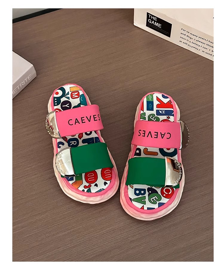 귀엽고 스타일리쉬한 그래피티 디자인 여성용 슬리퍼, 2026년 여름 신상 인터넷 인기 캐주얼 두꺼운 밑창 플랫폼 벨크로 샌들스토어 가기