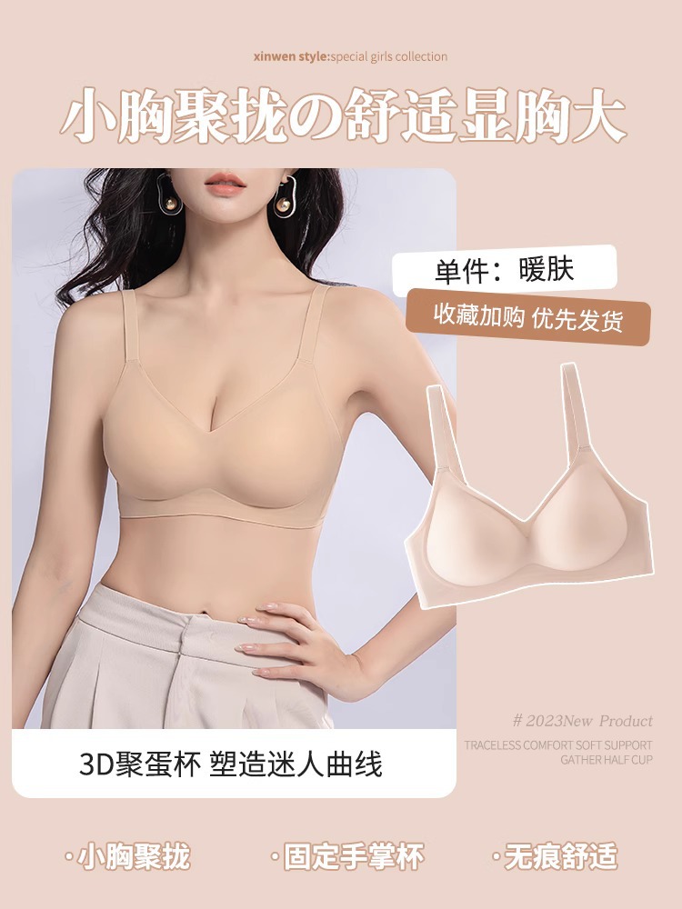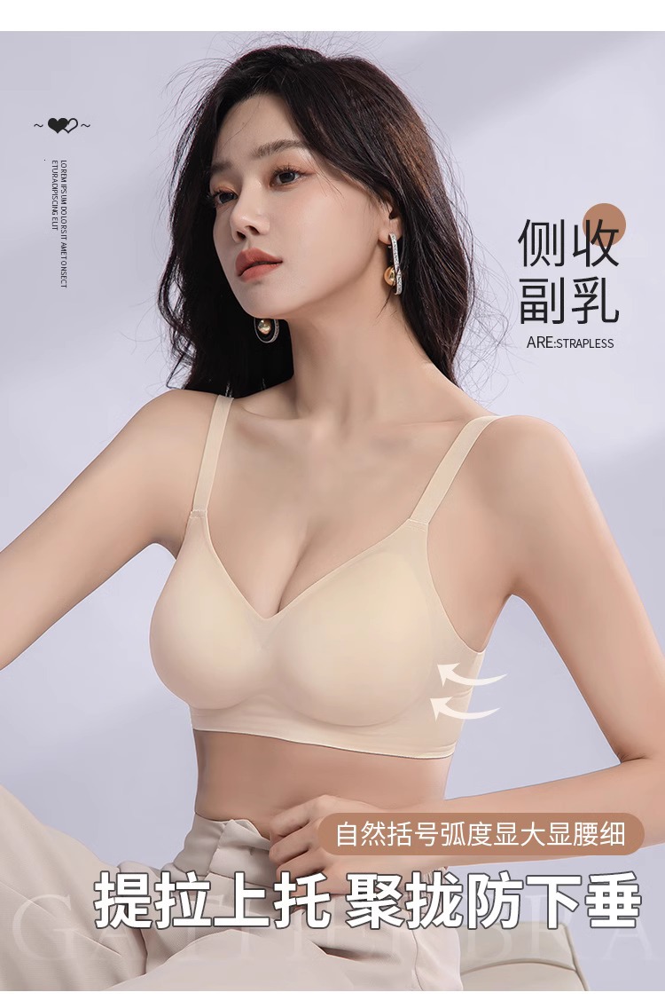 Tracless 속옷 여성의 작은 가슴 푸시 업 대형 원피스 고정 컵 유방 처짐 방지 상부 지원 소프트 지원 브래지어스토어 가기