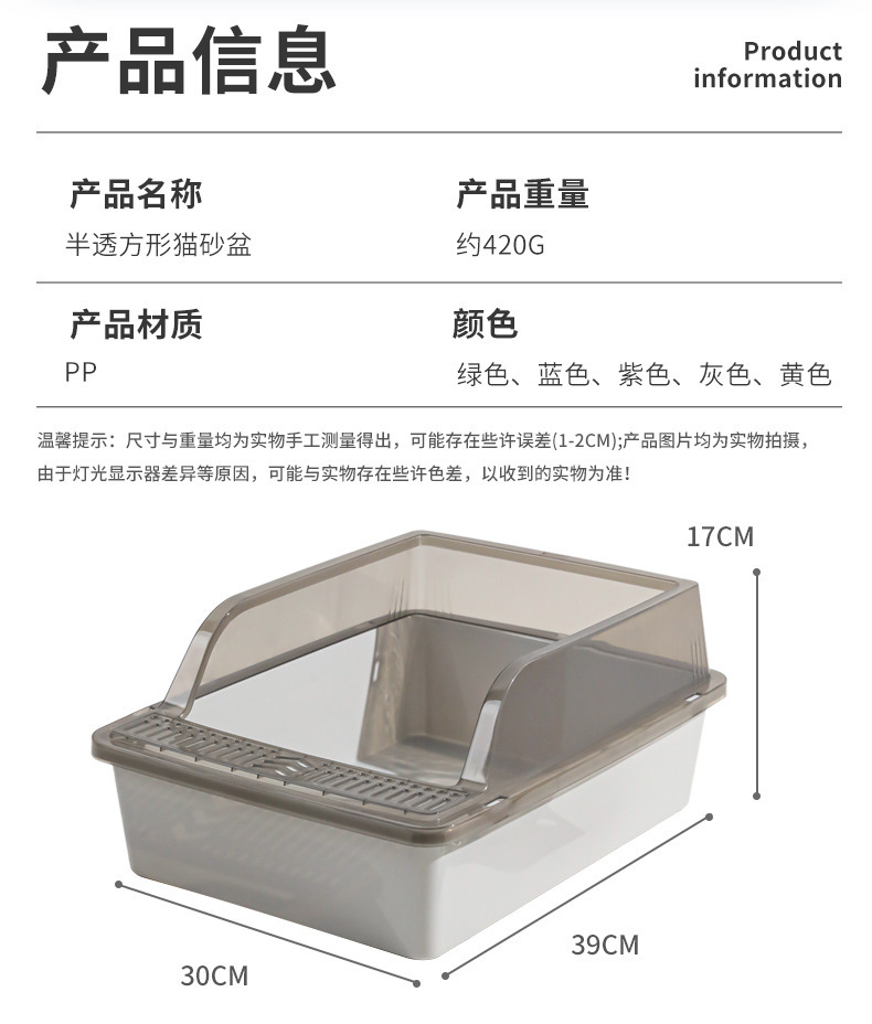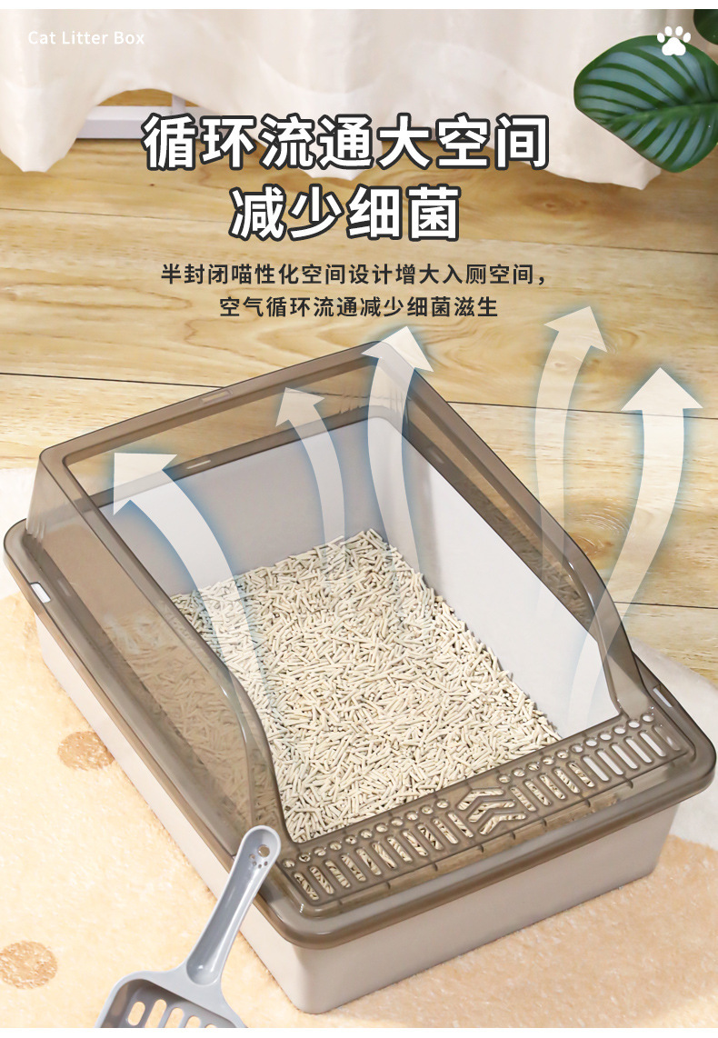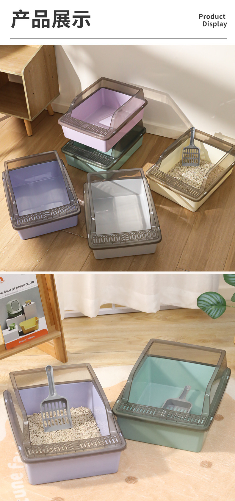 반밀폐형 고양이 화장실, 물 튀김 방지, 반투명 사각형 고양이 화장실, 무료 고양이 쓰레기 삽, 새끼 고양이를 위한 특수 고양이 화장실 도매