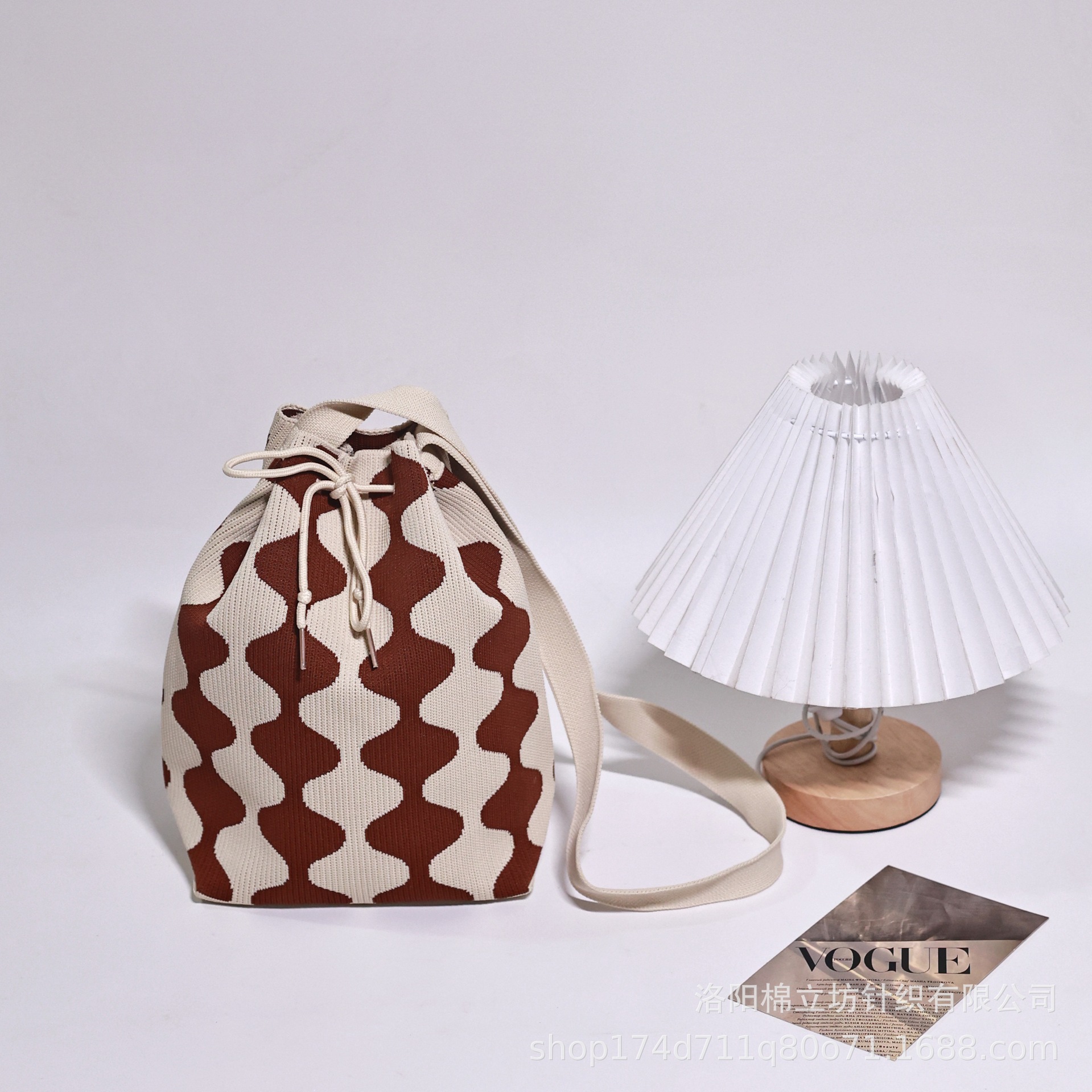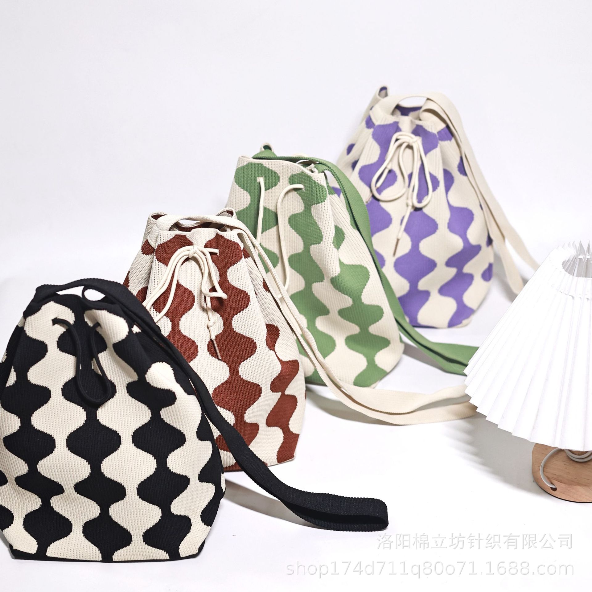 작은 그룹 beveled 크로스 바디 가방 휴대용 drawstring 가방 짠 단열 가방 점심 가방 컵 여성용 가방