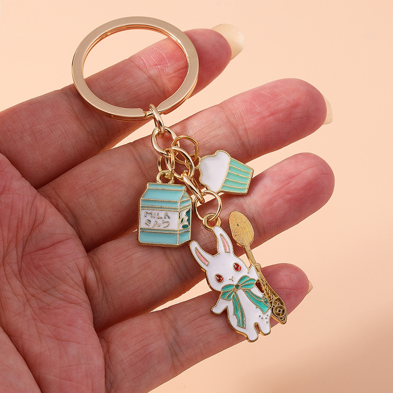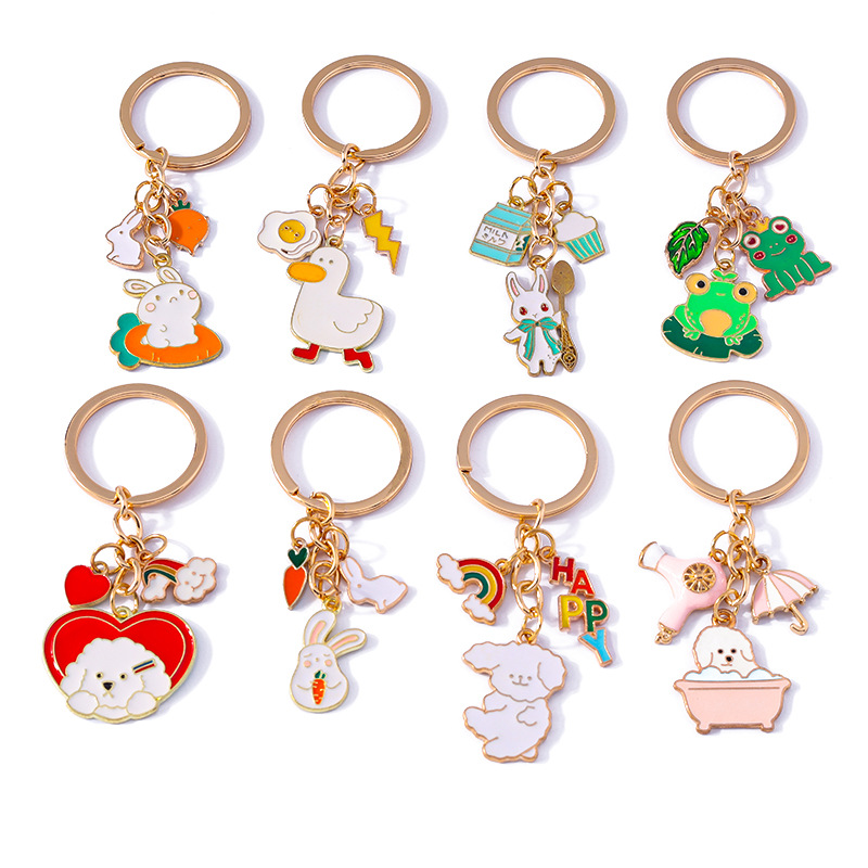 2024 새로운 간단한 패션 창조적 인 동물 토끼 오리 키 체인 만화 사랑 개 개구리 액세서리
