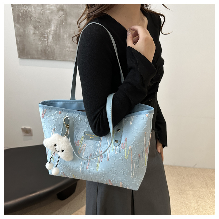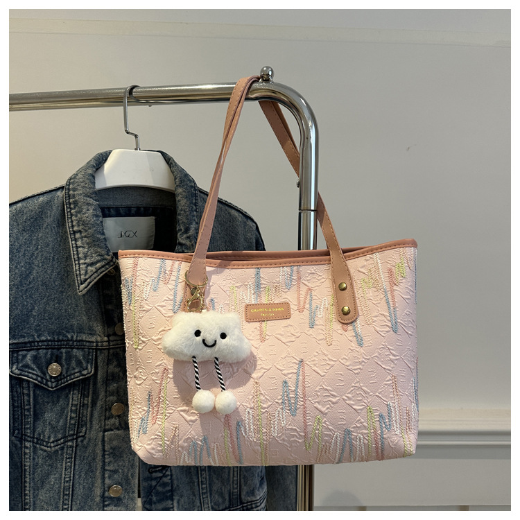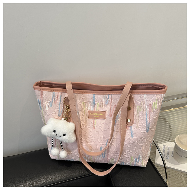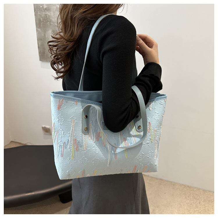 학생 클래스 헝겊 가방 가방 여성의 2024 새로운 도착 어깨 언더암 가방 스트라이프 대용량 통근 레저 토트 백