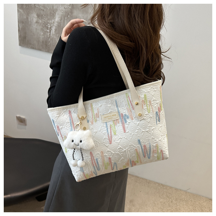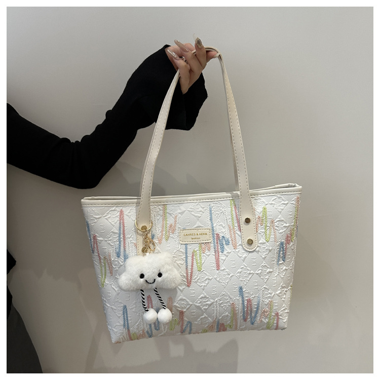 학생 클래스 헝겊 가방 가방 여성의 2024 새로운 도착 어깨 언더암 가방 스트라이프 대용량 통근 레저 토트 백스토어 가기