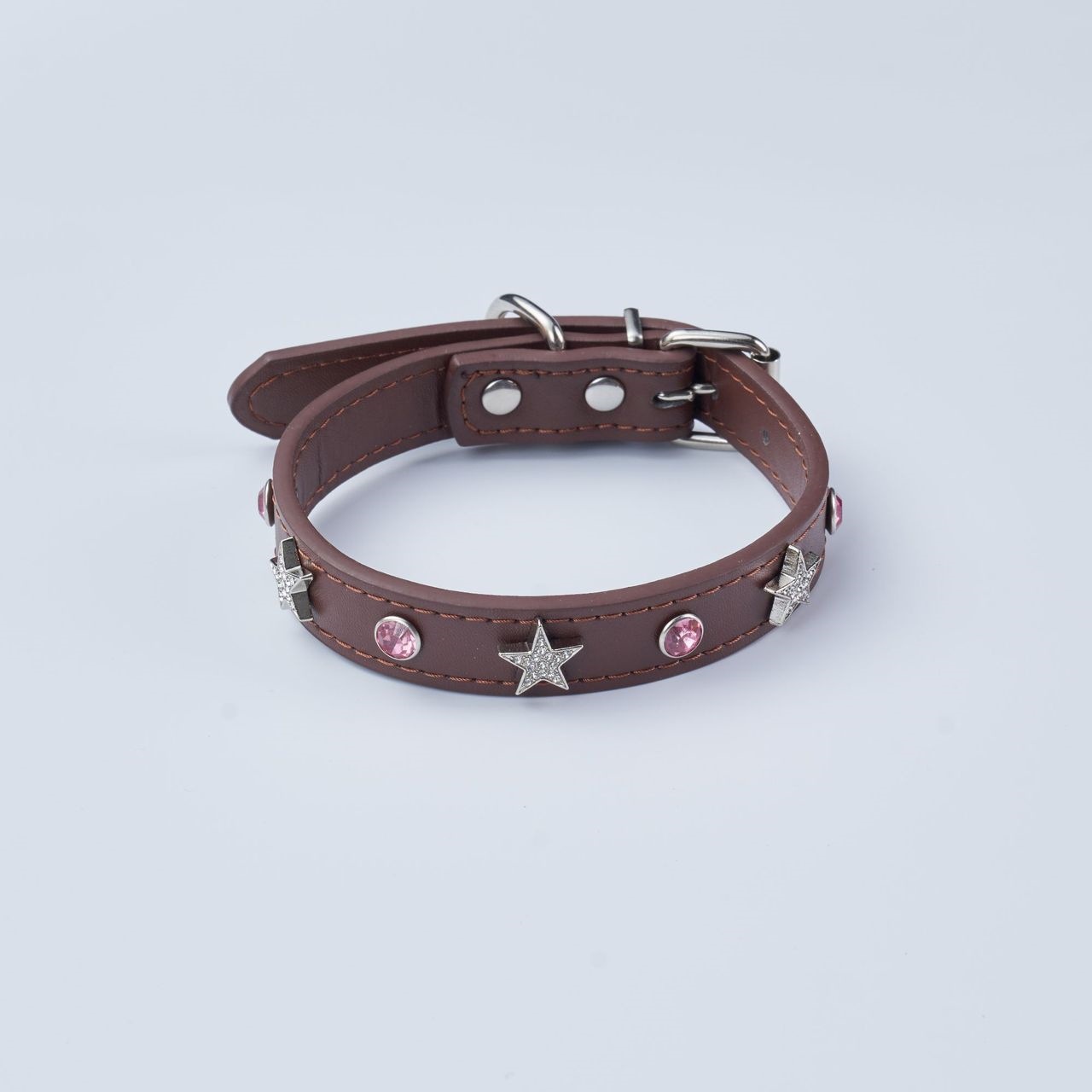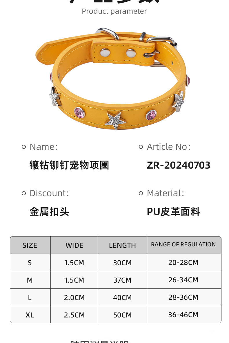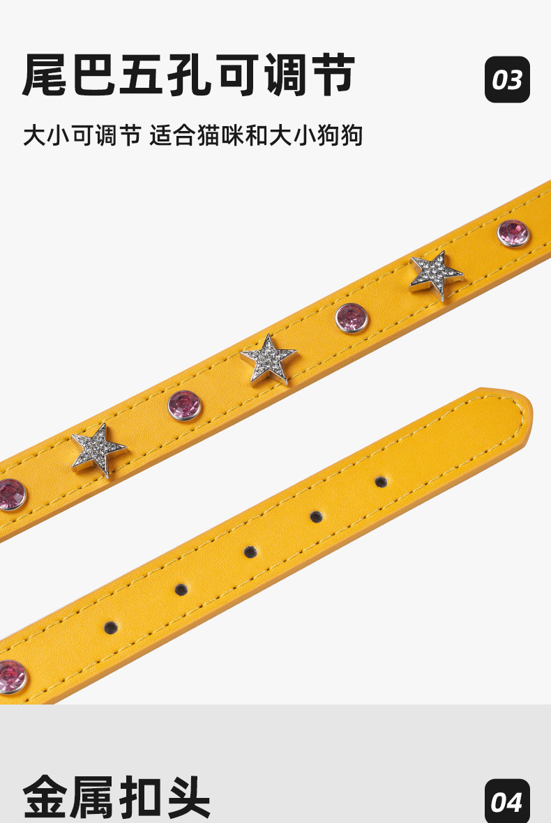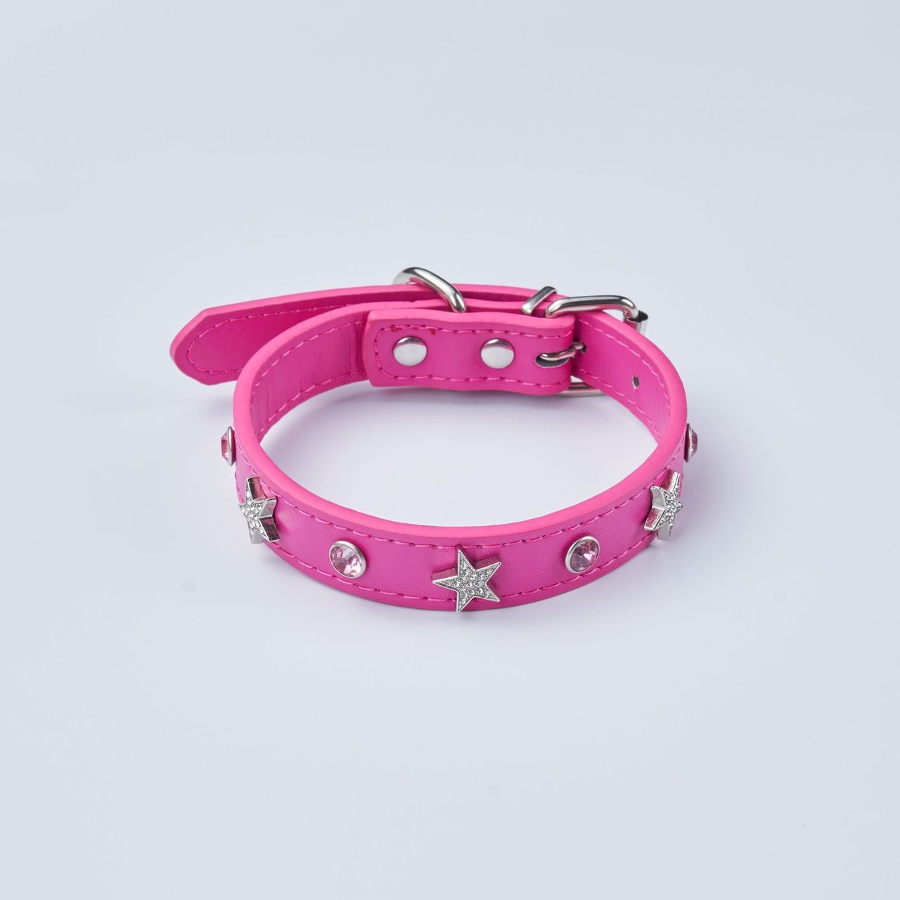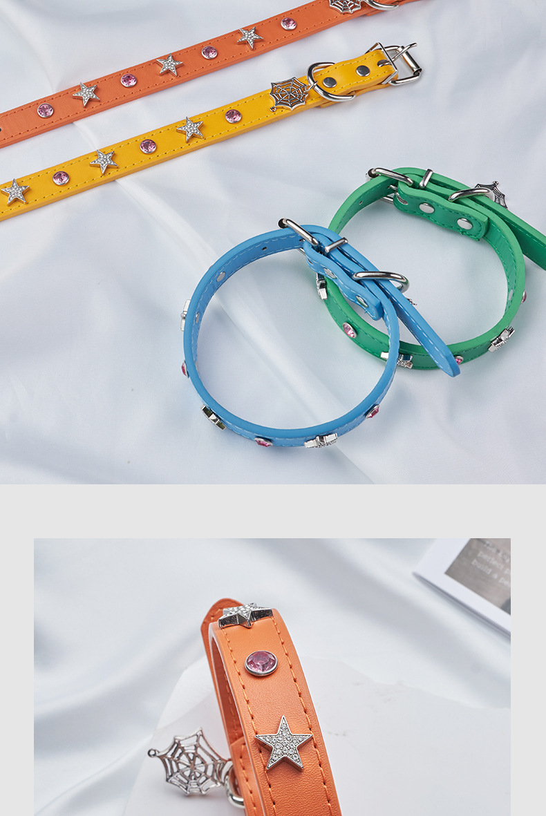 새로운 고양이 애완동물 목걸이, 다이아몬드가 박힌 분홍색 오각별 리벳, 강아지 용품 가죽 목걸이, 새끼 고양이용