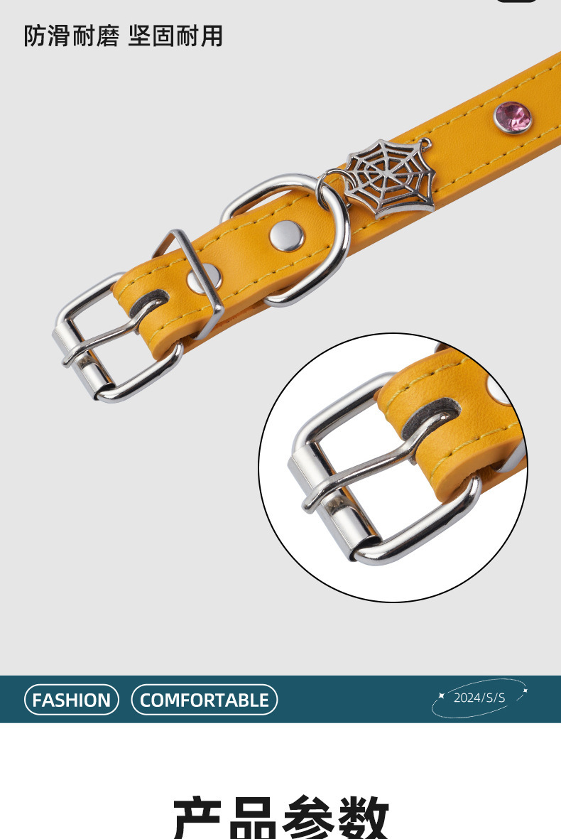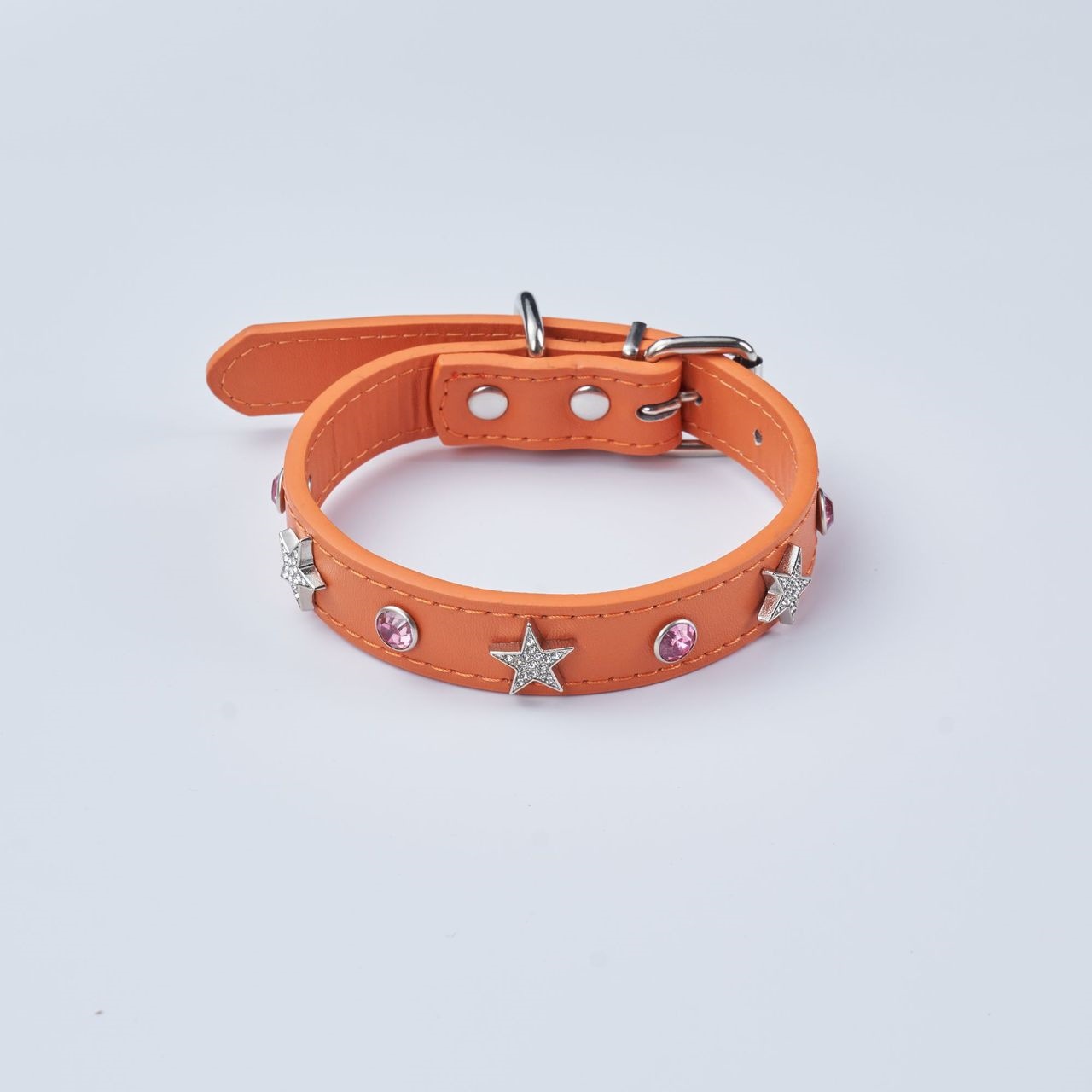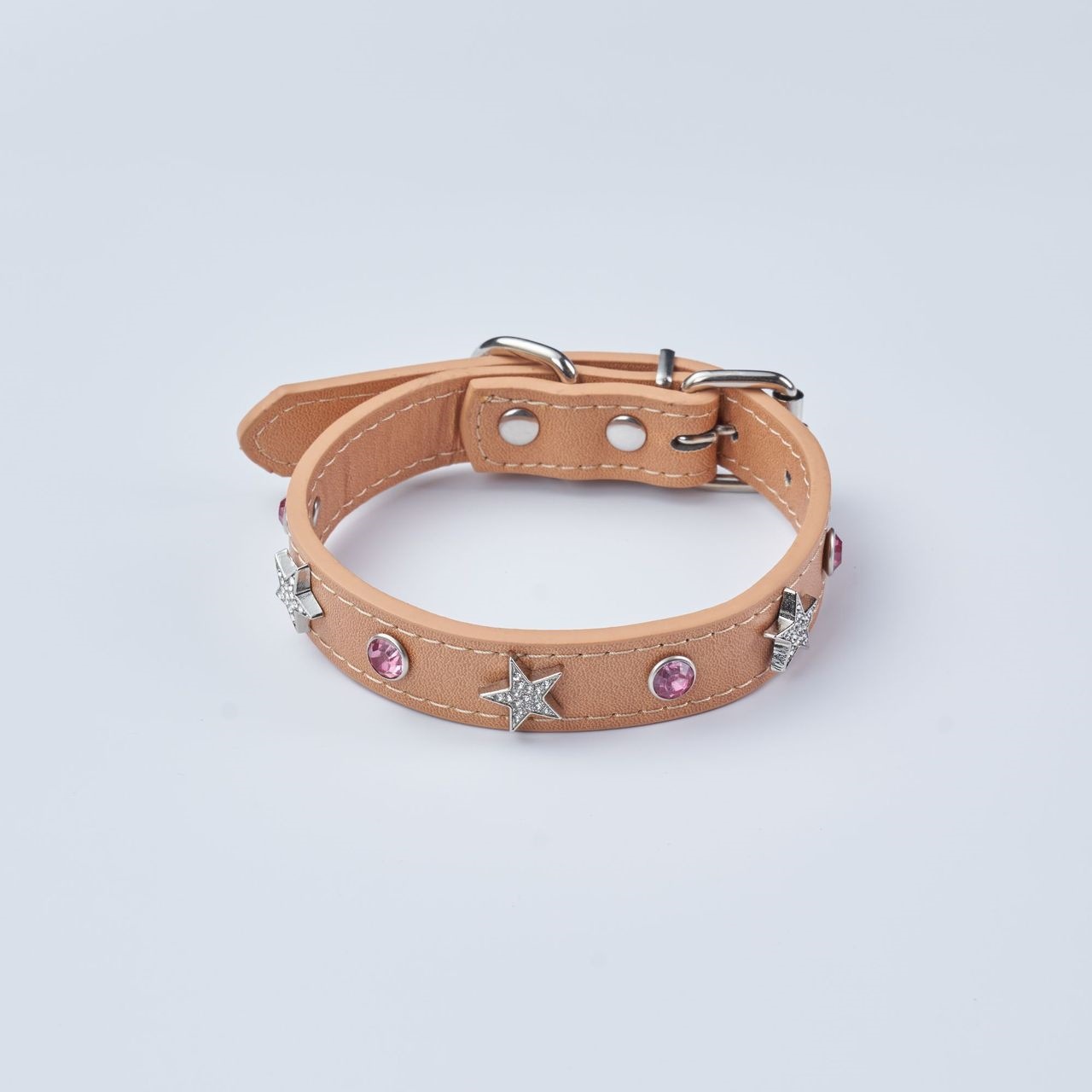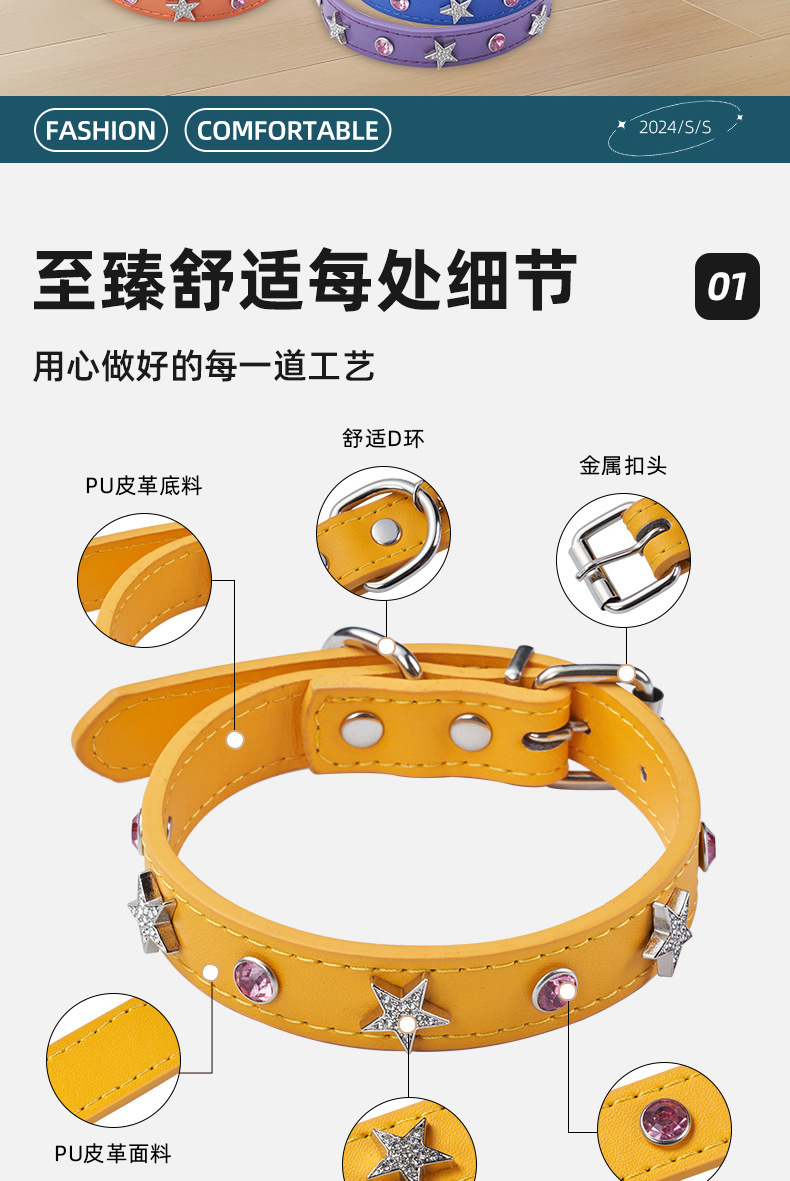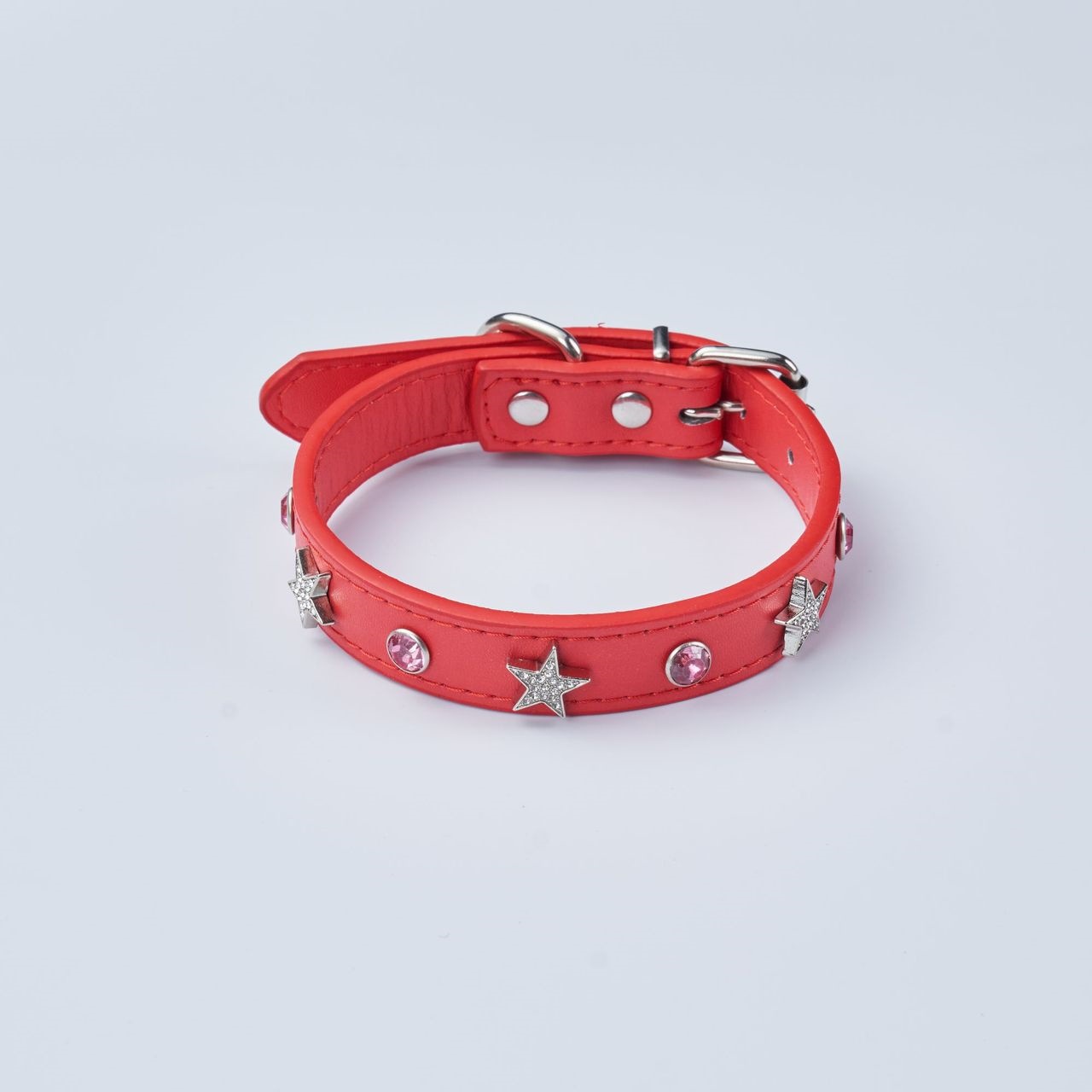 새로운 고양이 애완동물 목걸이, 다이아몬드가 박힌 분홍색 오각별 리벳, 강아지 용품 가죽 목걸이, 새끼 고양이용
