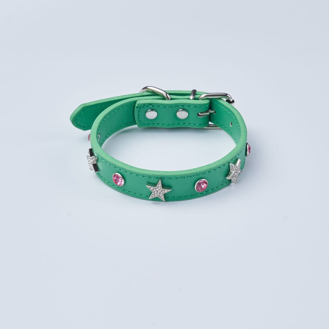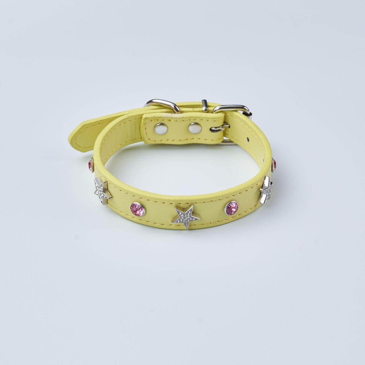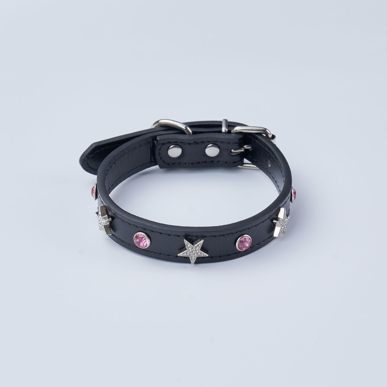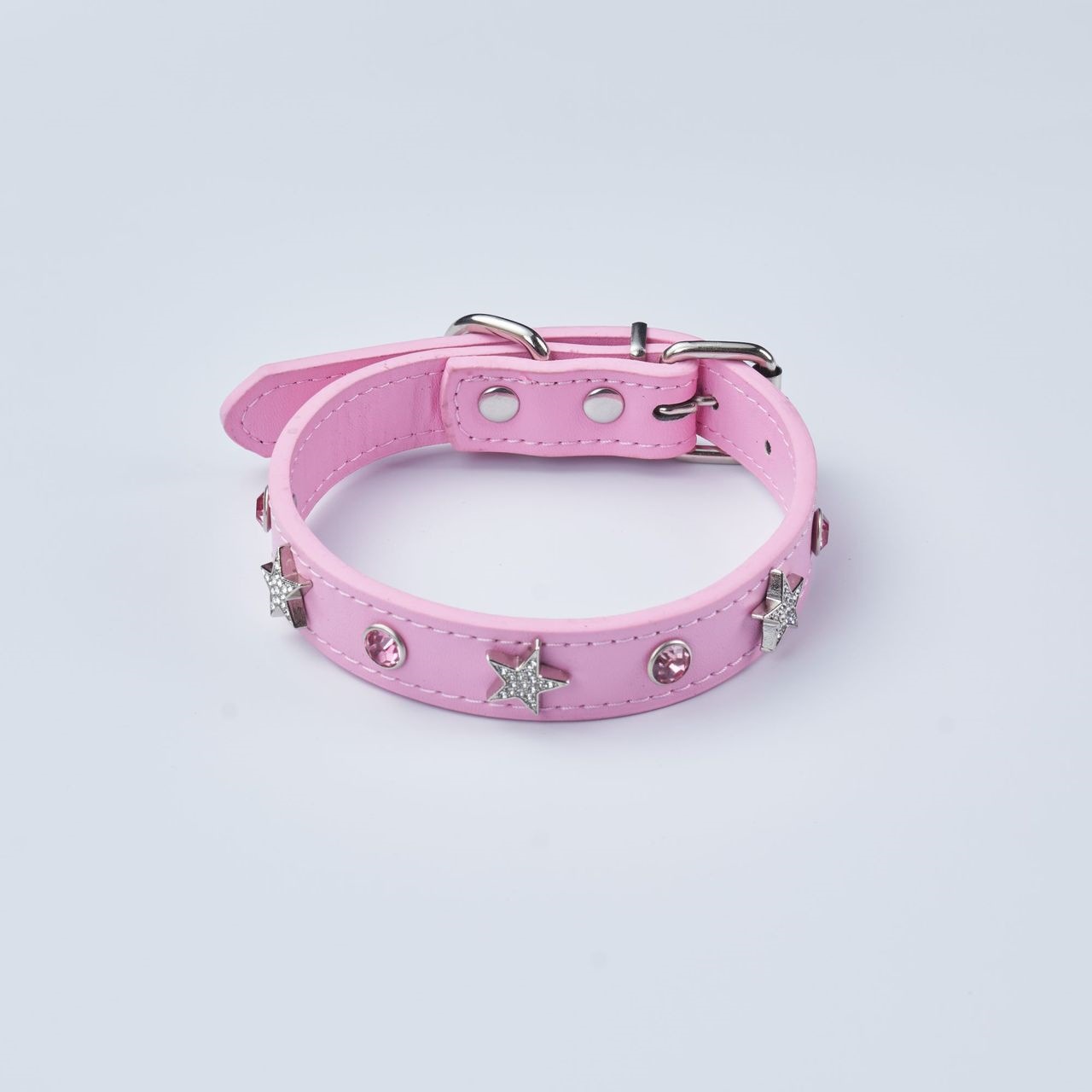새로운 고양이 애완동물 목걸이, 다이아몬드가 박힌 분홍색 오각별 리벳, 강아지 용품 가죽 목걸이, 새끼 고양이용스토어 가기