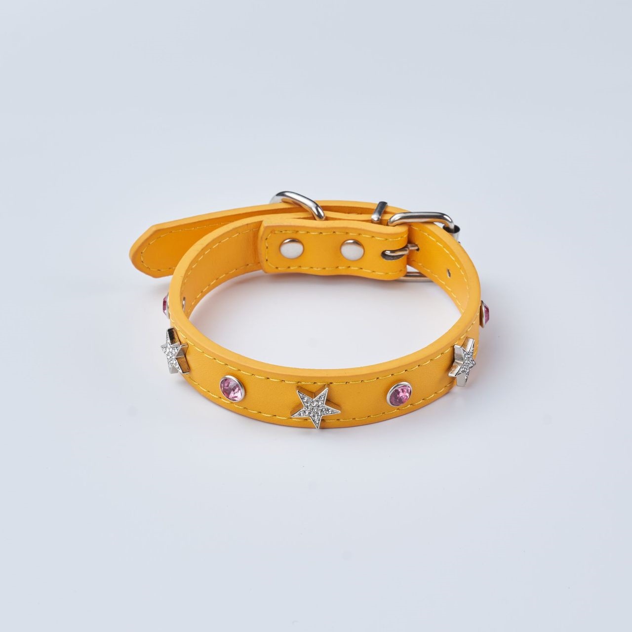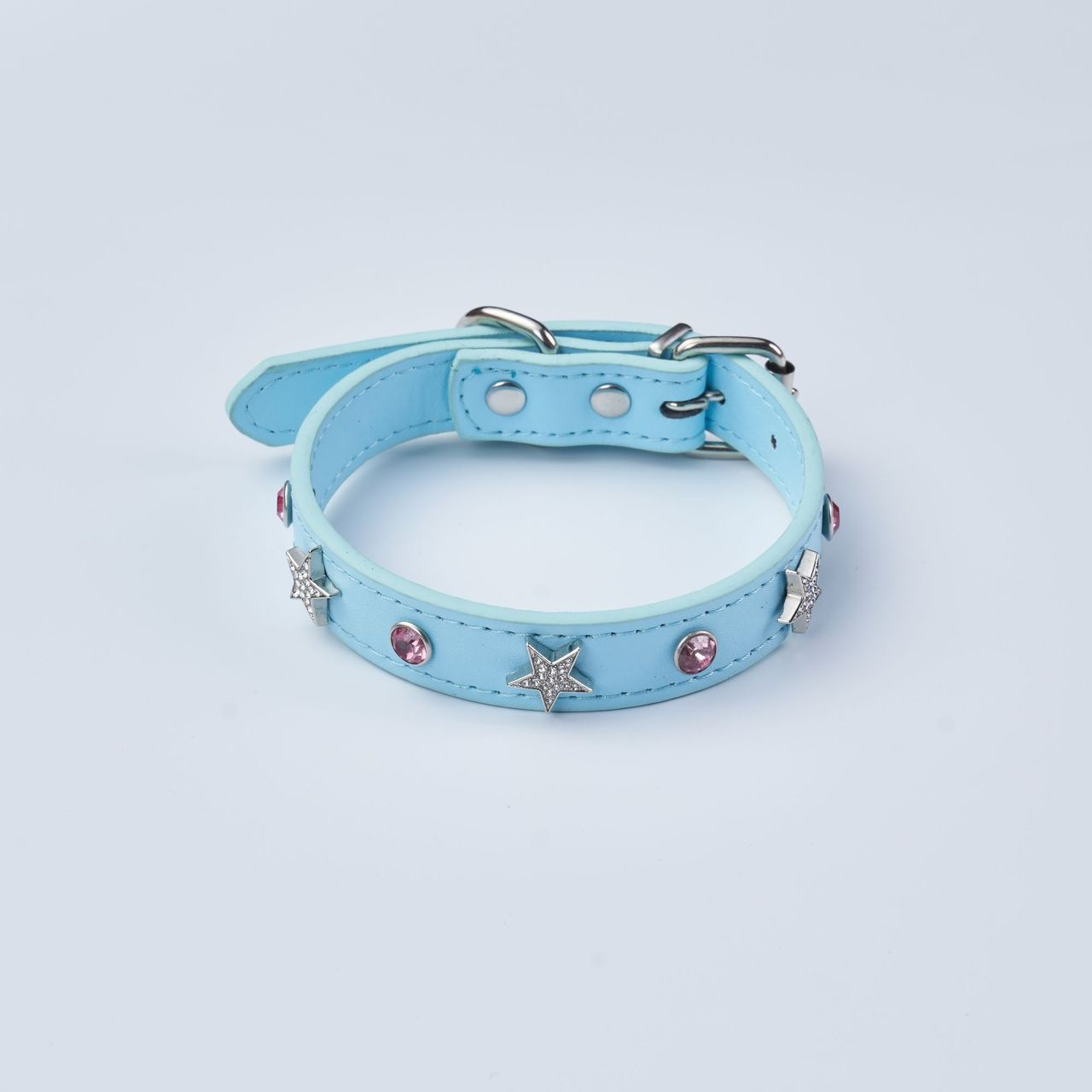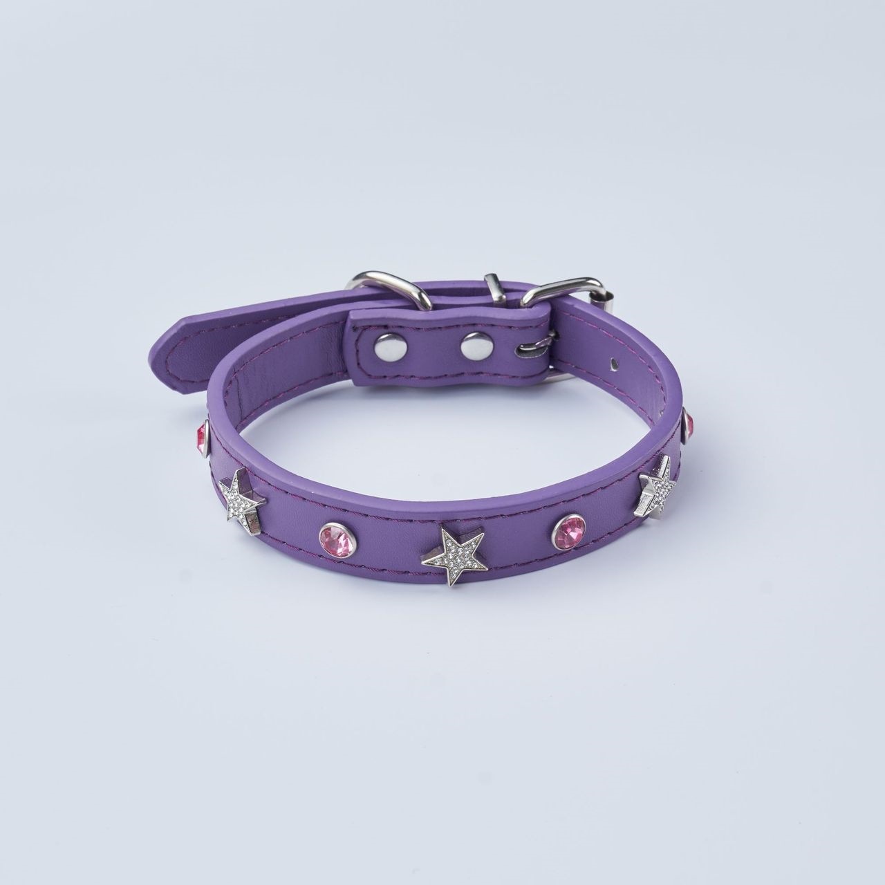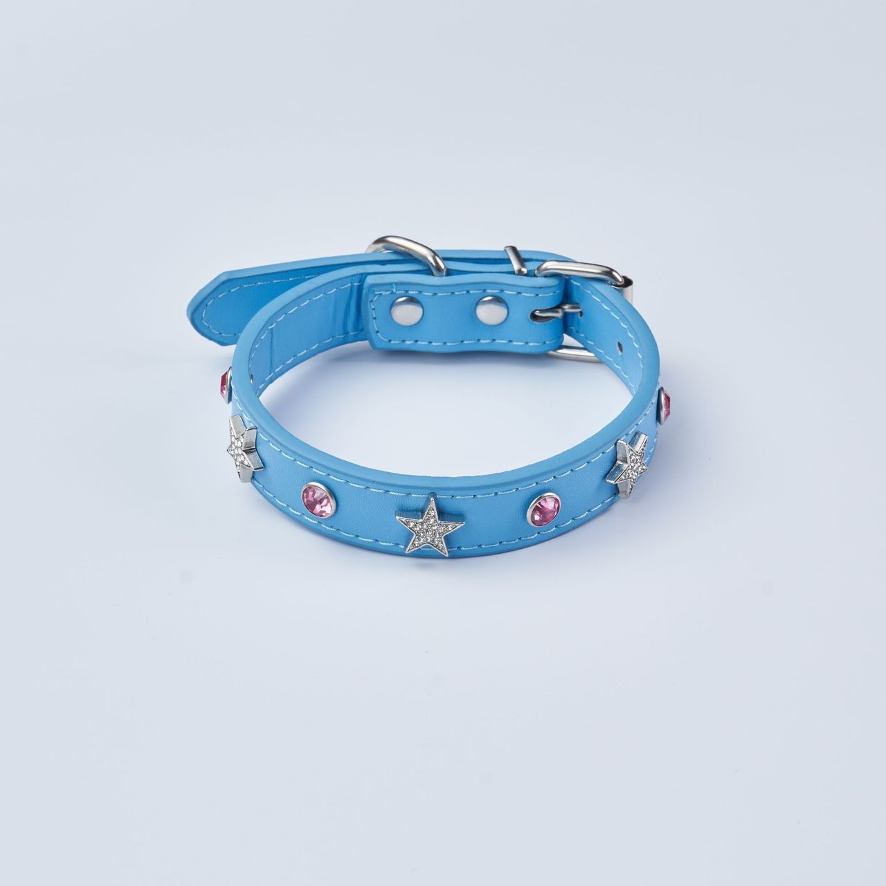 새로운 고양이 애완동물 목걸이, 다이아몬드가 박힌 분홍색 오각별 리벳, 강아지 용품 가죽 목걸이, 새끼 고양이용스토어 가기