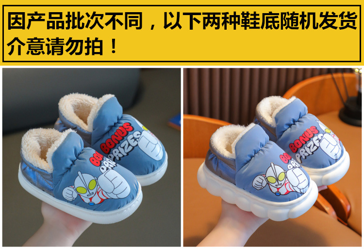 정품 울트라 맨 겨울 어린이 면화 신발 만화 소년 소녀 실내 및 실외 착용 따뜻한 방수 아기 가방 면화 신발스토어 가기