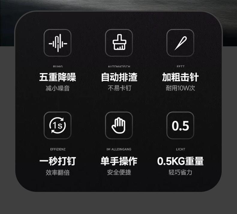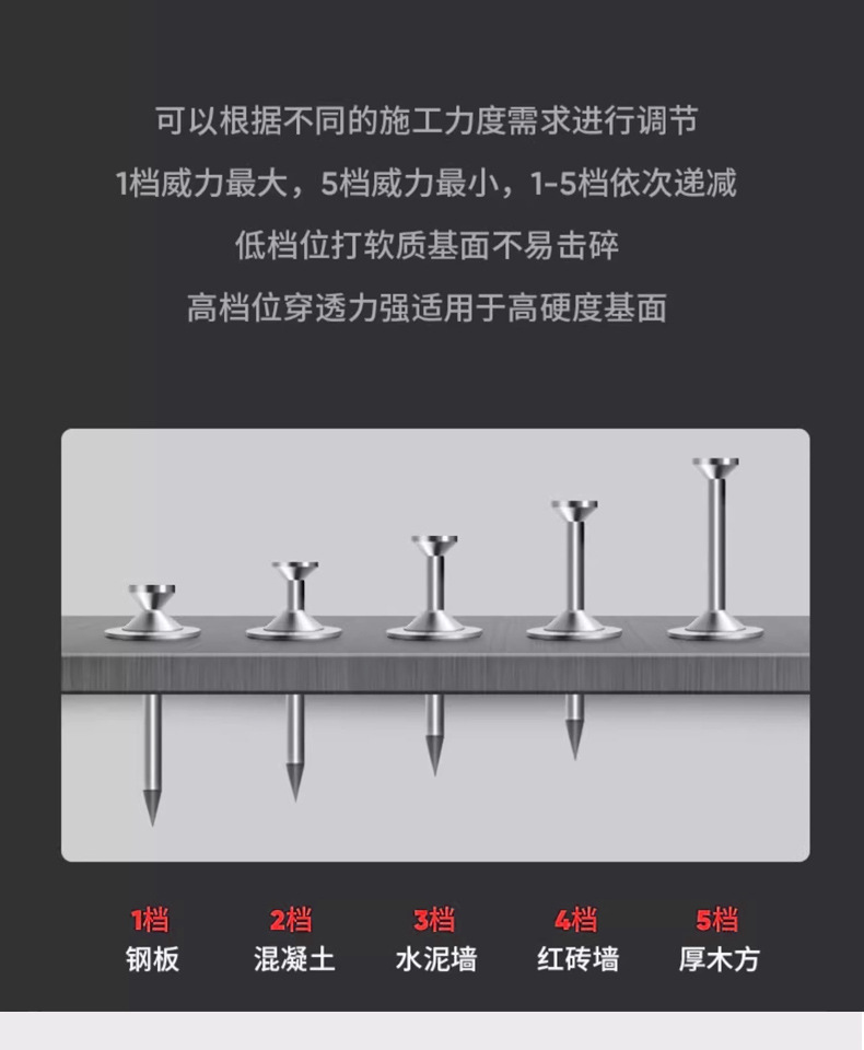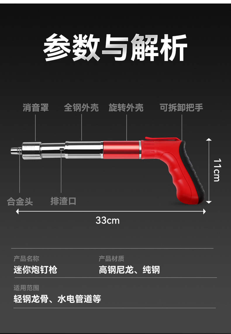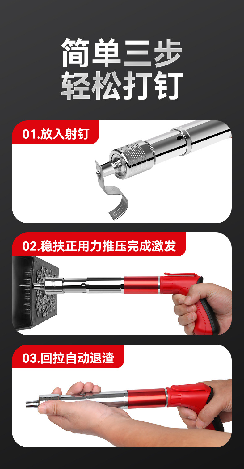 • 모든 강철 검정색과 빨간색 단일 총 + 액세서리 가방 + 도구 상자 + 둥근 못 50개