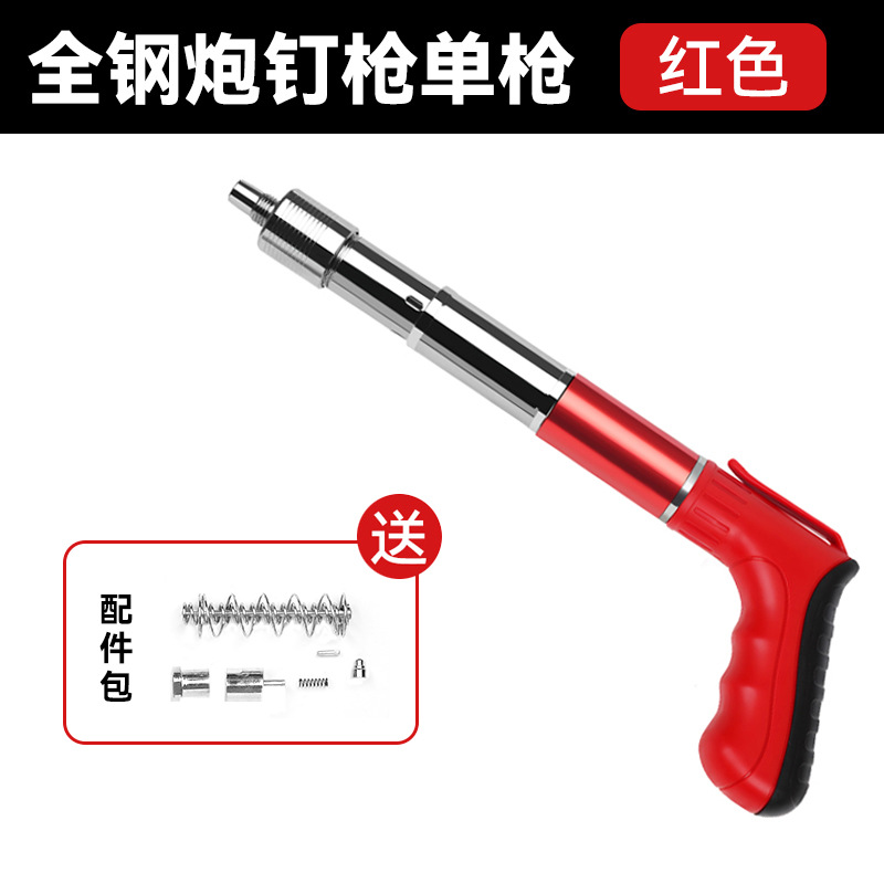 • 모든 강철 빨간색 단일 총 + 액세서리 키트 + 도구 상자 + 둥근 못 50개
