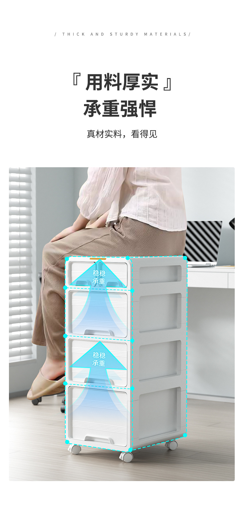 • 4단 다기능 서랍 플로어 캐비닛 화이트