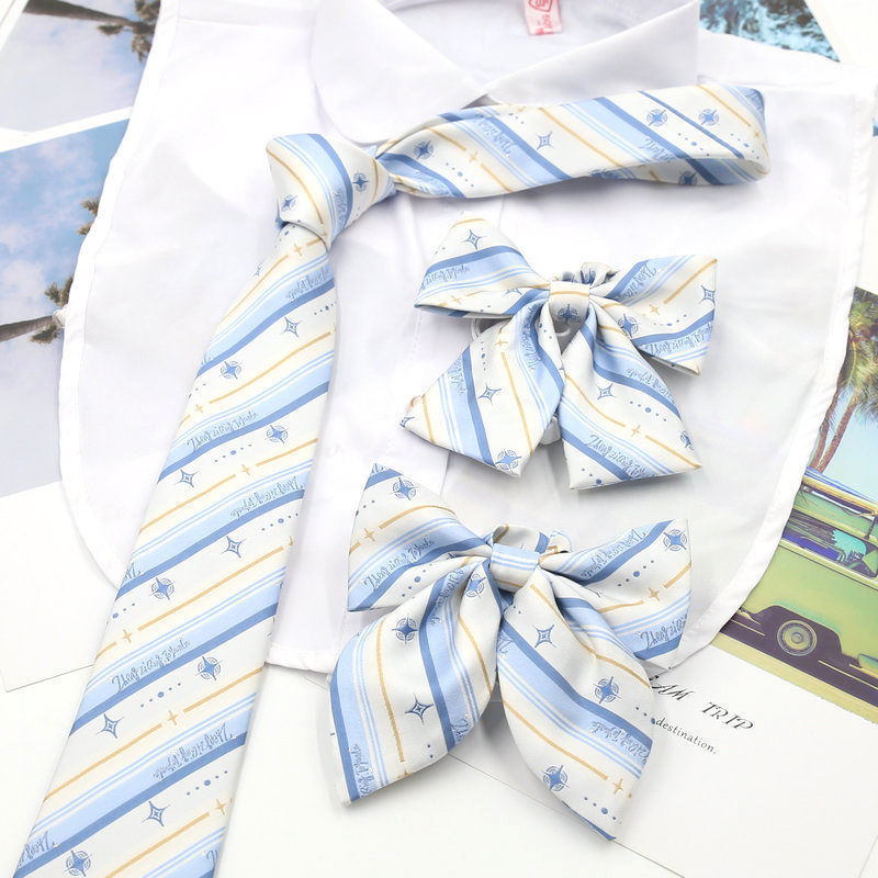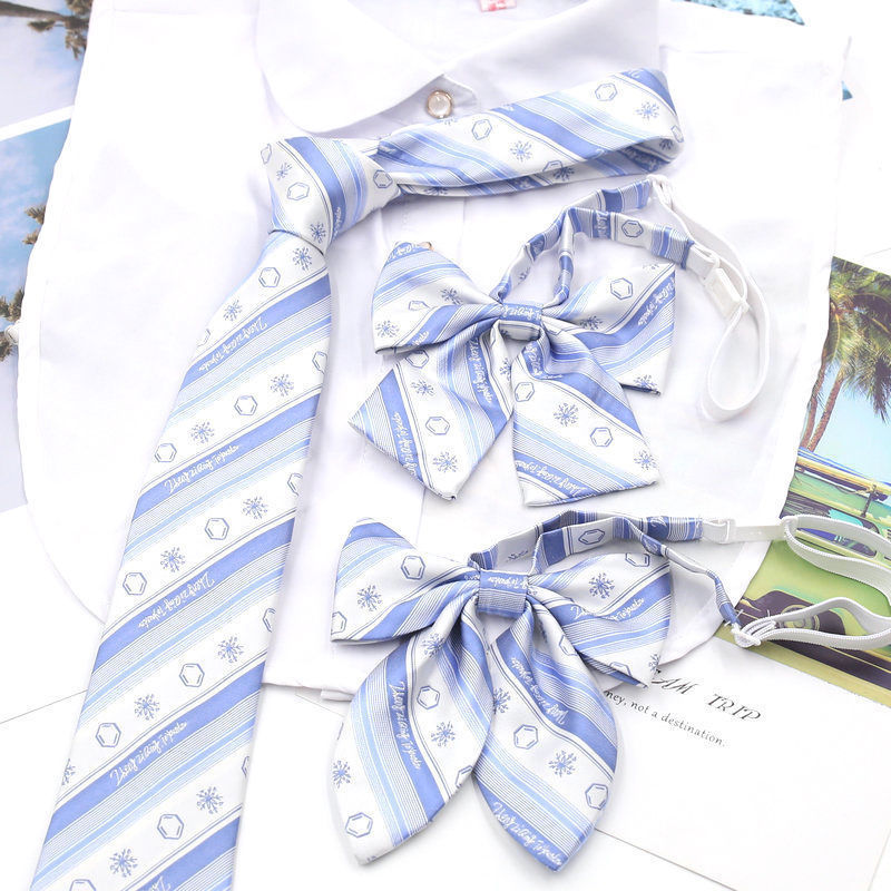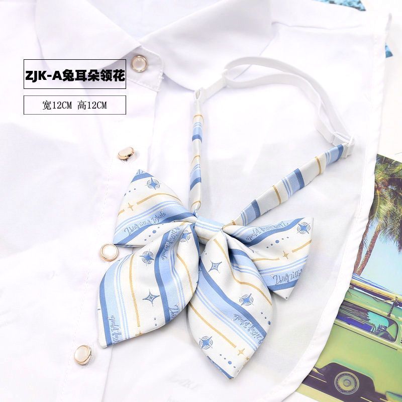 원래 JK 활 넥타이/넥타이 일본 스타일 라이트 블루 귀여운 소녀 빈티지 토끼 귀 플랫 코너 나비 넥타이