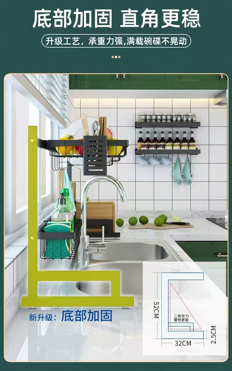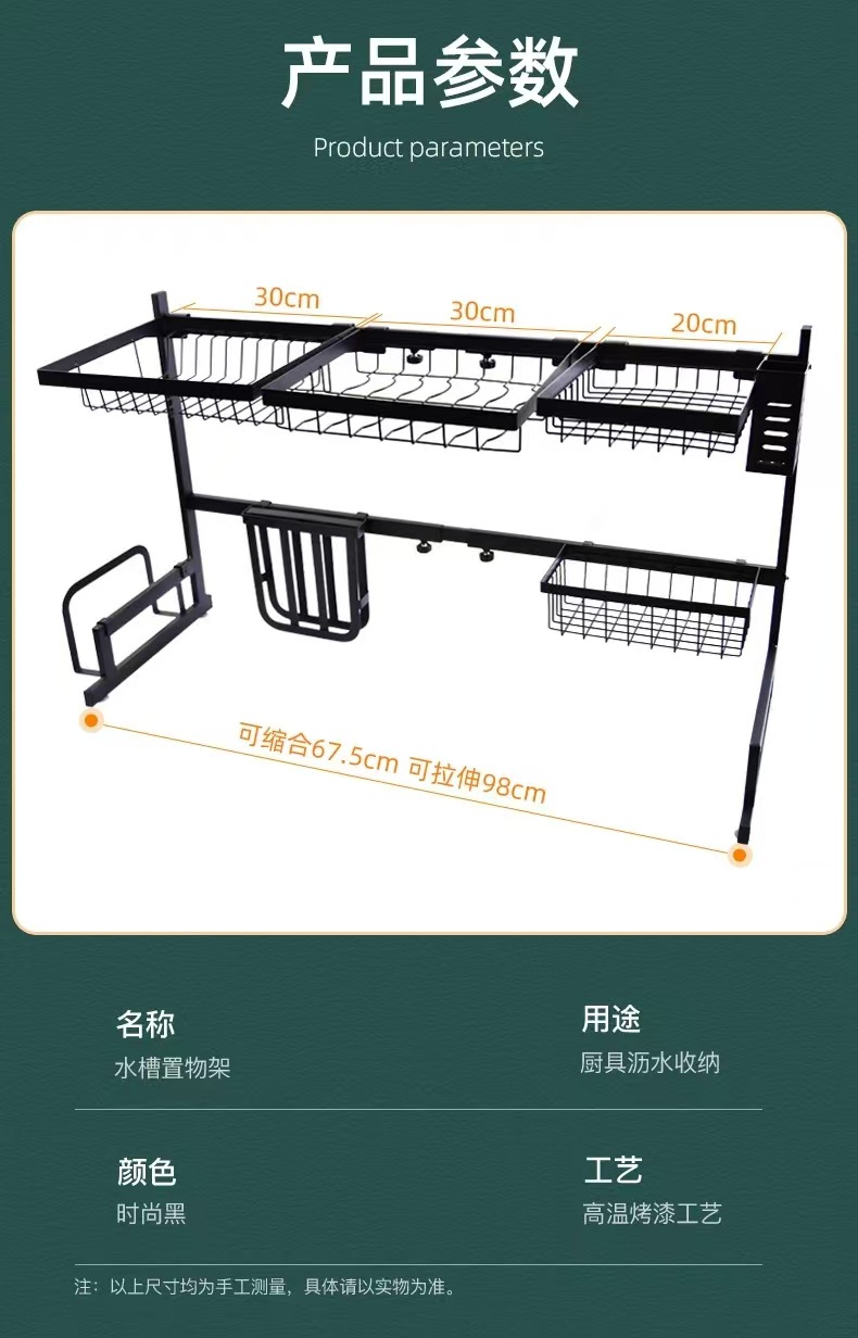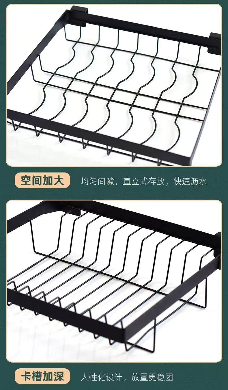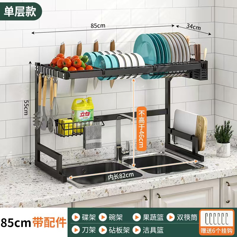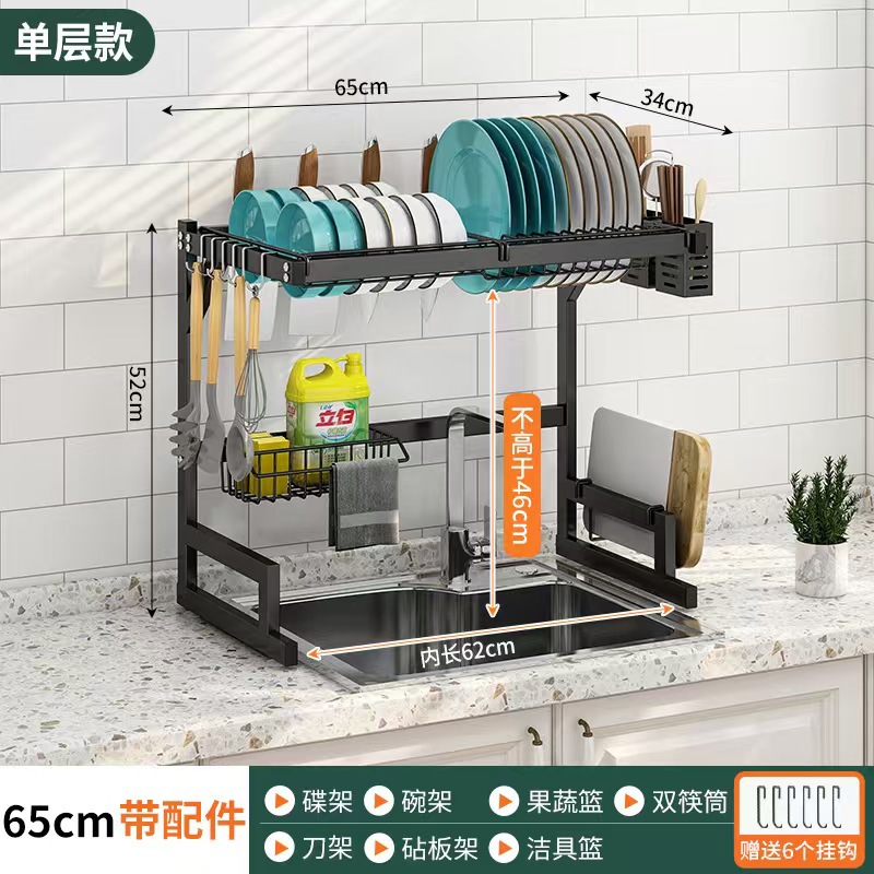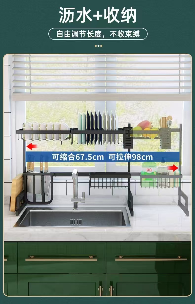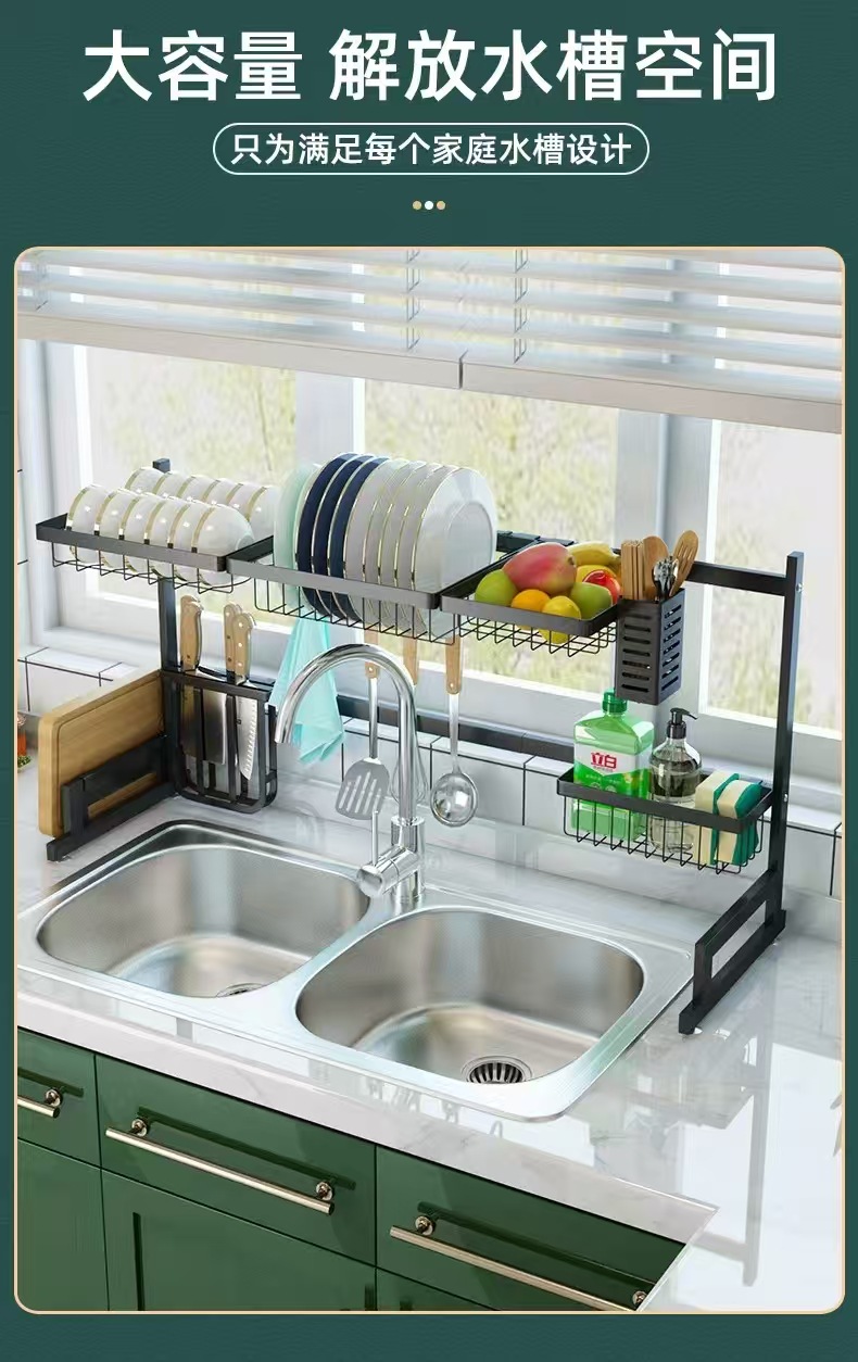 국경 간 동일 스타일의 텔레스코픽 주방 싱크 블랙 스토리지 랙 스테인레스 스틸 드레인 랙 칼 세척 및 보관 랙스토어 가기