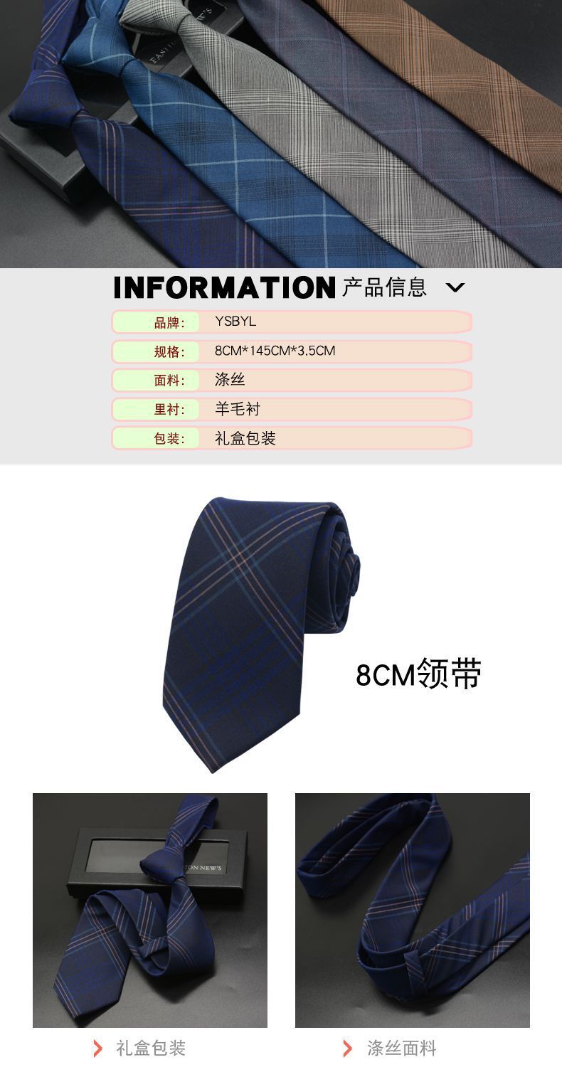 YSBYL 원피스 8cm 한국 스타일 넥타이 남성 패션 캐주얼 영국 회색 격자 무늬 트렌디 한 넥타이 남성 선물 상자스토어 가기