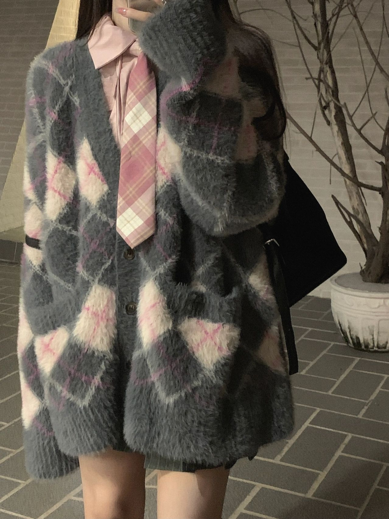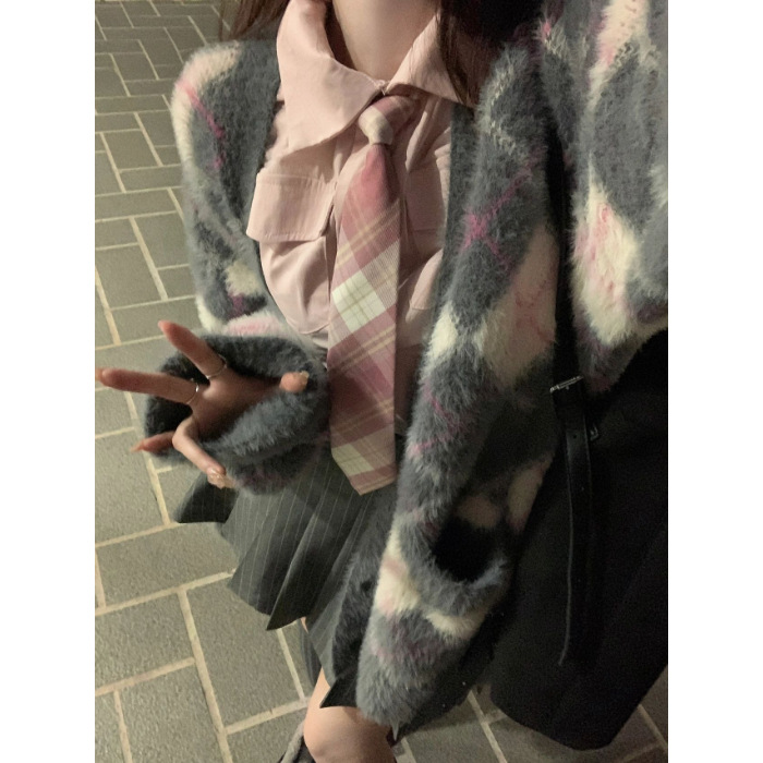 플러스 사이즈 통통녀 달콤하고 매운 학술 스타일 마름모 밍크 벨벳 스웨터 재킷 여자 가을 겨울 올 매치 소프트 왁스 니트 카디건 트렌디스토어 가기