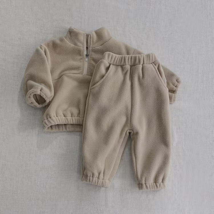 한국 새 가을 아기 양면 벨벳 스포츠 세트 아기 봄 가을 기모 세트 아우터 투피스 세트