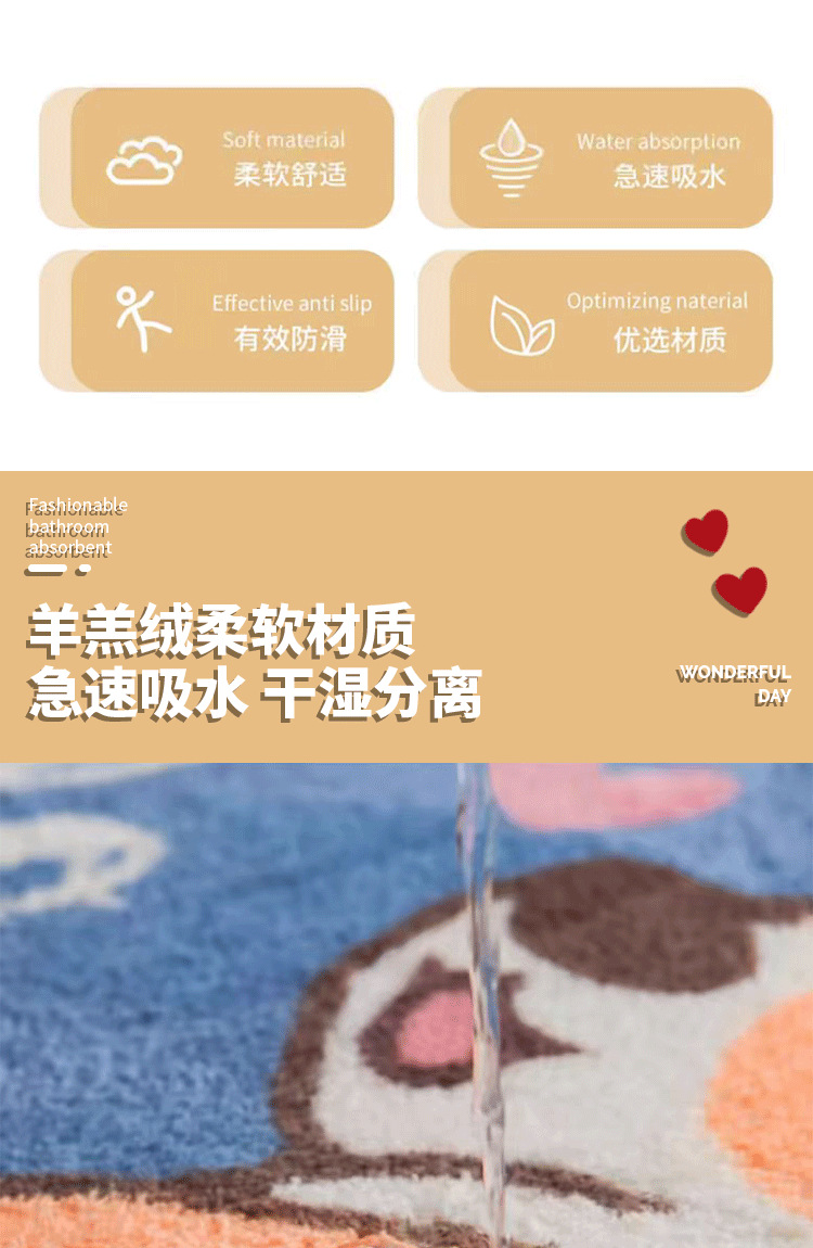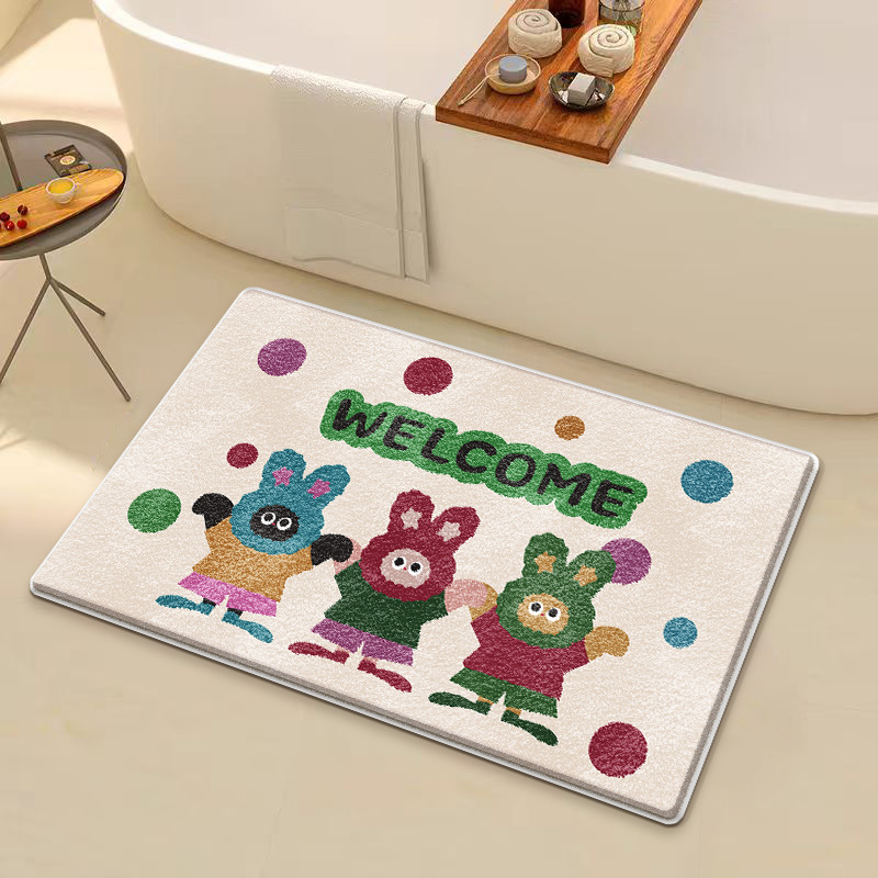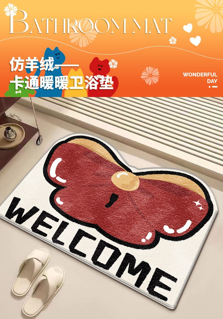 만화 캐릭터 흡수성 욕실 매트, 모조 캐시미어 가정용 미끄럼 방지 매트, 내마모성, 관리가 쉬운 화장실/욕실 매트스토어 가기