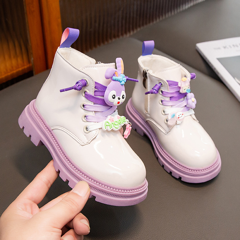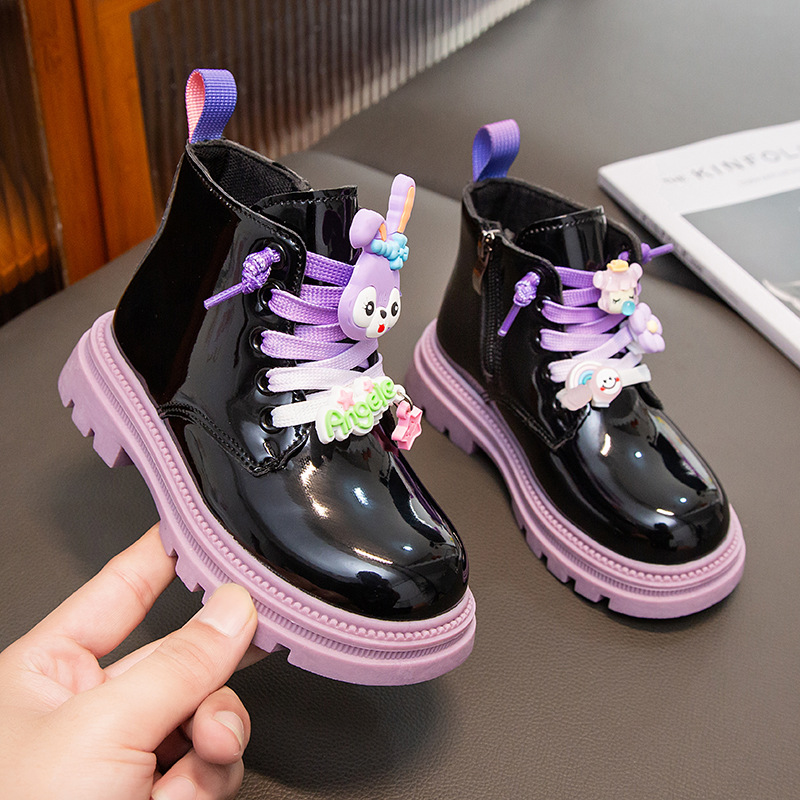 여자 공주 부츠 2025 새로운 가을, 겨울 여자 마틴 부츠 어린이 가죽 부츠 어린이 벨벳 면화 부츠스토어 가기