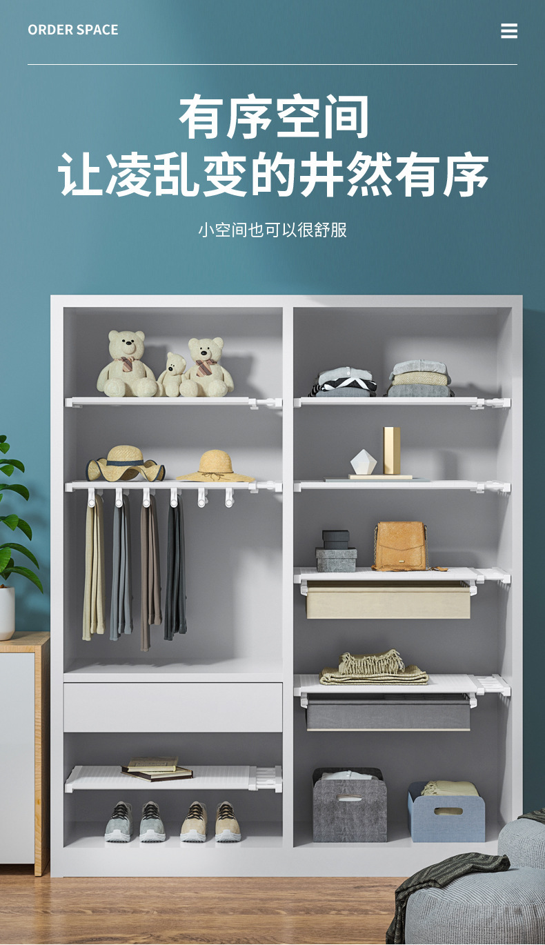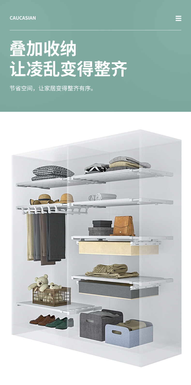 옷장 파티션 계층화 된 보관 랙 옷장 내부 캐비닛 파티션 네일 프리 텔레스코픽 기숙사 보관 랙 파티션 파티션스토어 가기