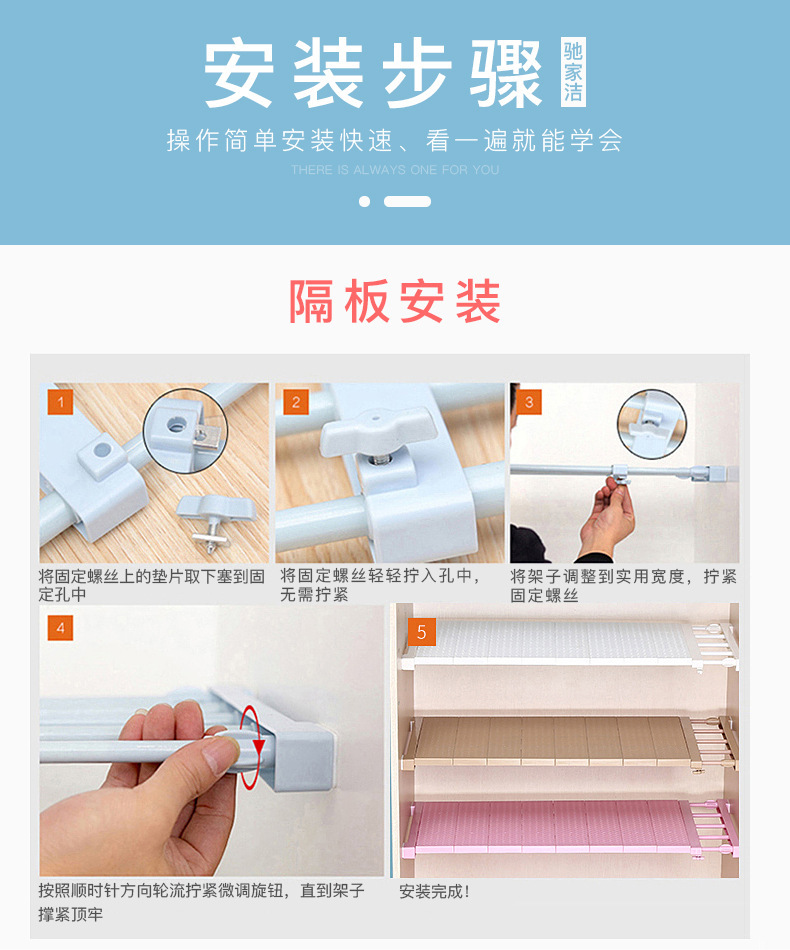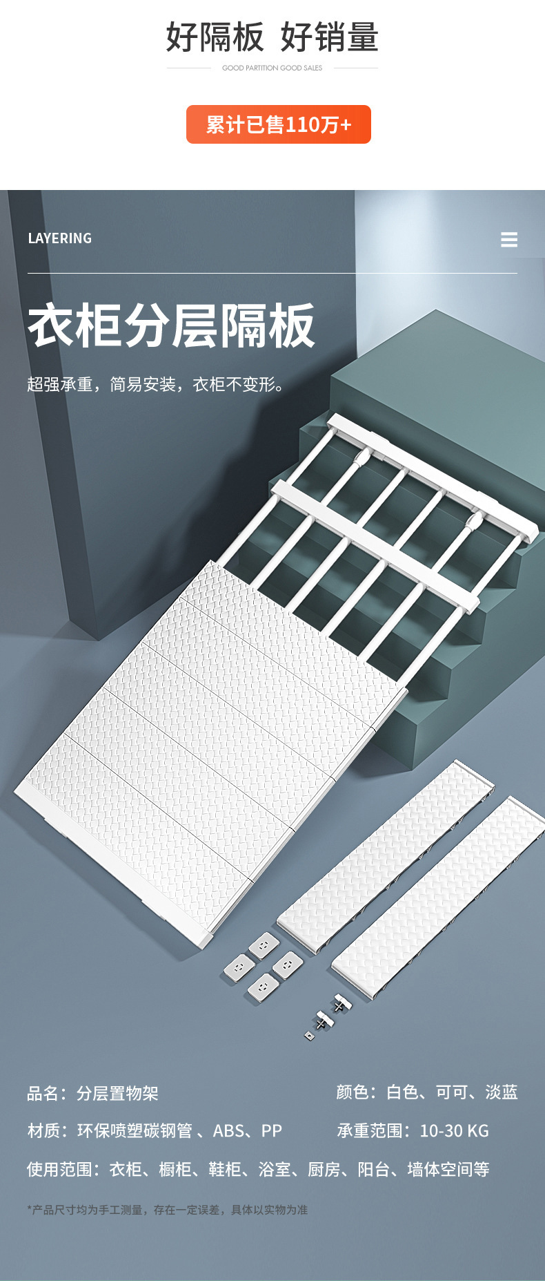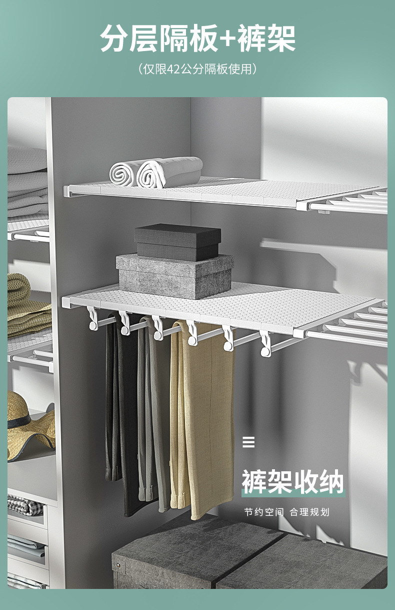옷장 파티션 계층화 된 보관 랙 옷장 내부 캐비닛 파티션 네일 프리 텔레스코픽 기숙사 보관 랙 파티션 파티션