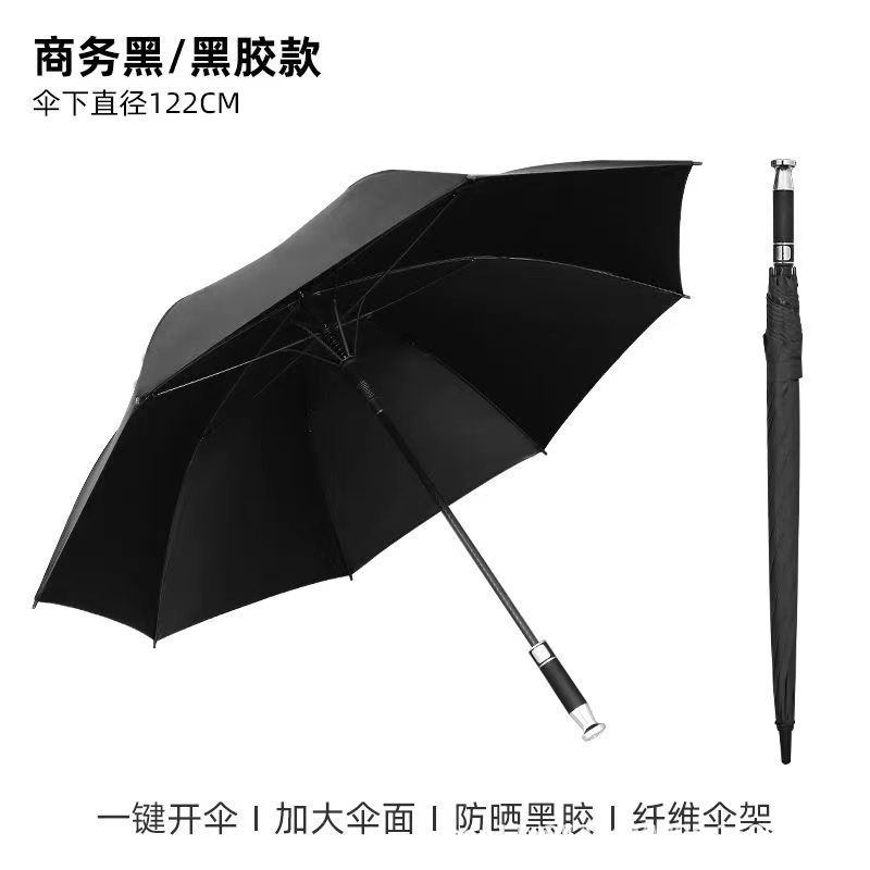 긴 손잡이 우산 블랙 고무 스트레이트 핸들 우산 초대형 자동 비즈니스 자동차 우산 골프 선물 광고 우산 로고