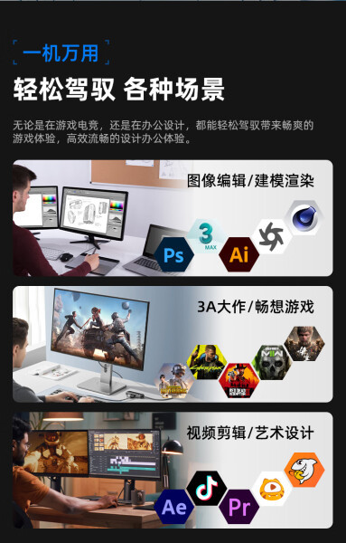 · 1个VGA+1个HDMI2.1+1 个 DP1.4 接口
