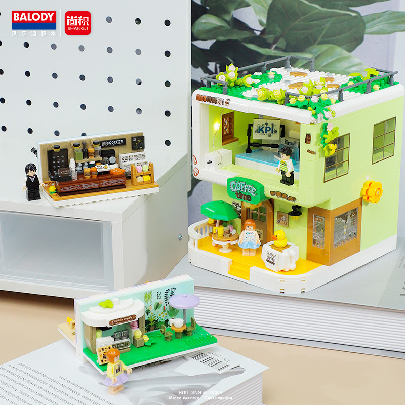 Bei Le Di 21204 영감 카페 스트리트 뷰 빌라 건축 어린이 교육 조립 빌딩 블록 장난감스토어 가기