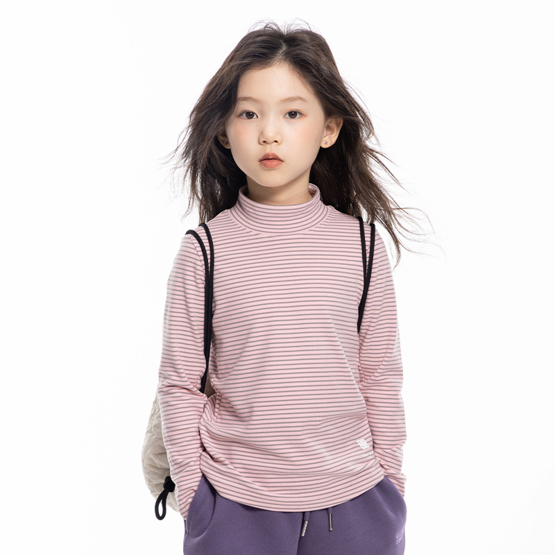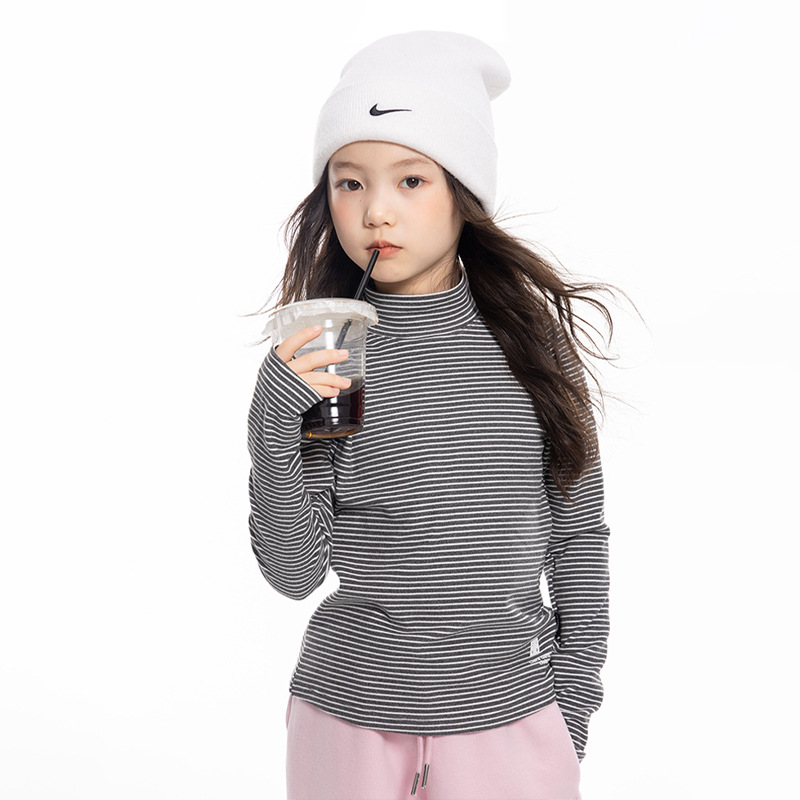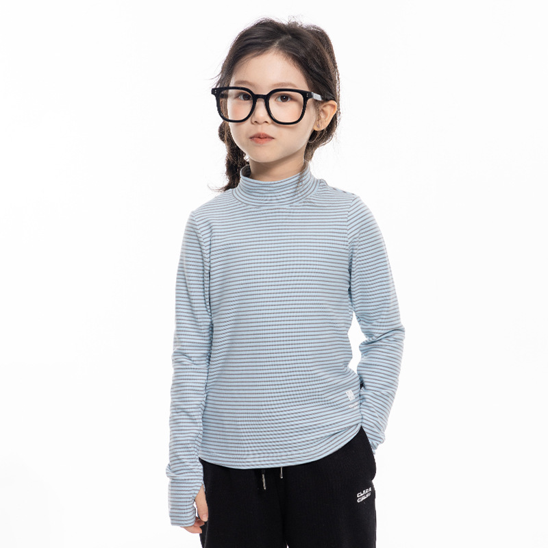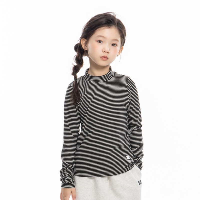여아 하프 터틀넥 스트라이프 바닥 셔츠 2025 가을 신작 아동용 슬림 긴팔 티셔츠 중대형 아동용 이너 탑스토어 가기