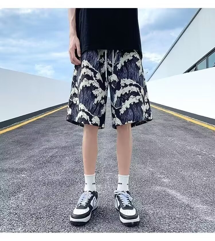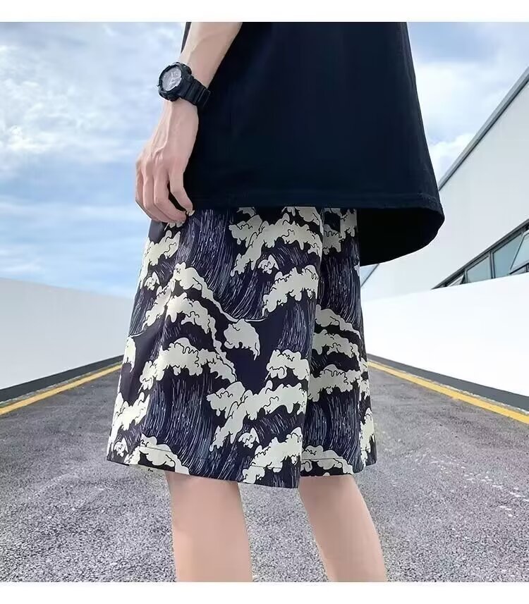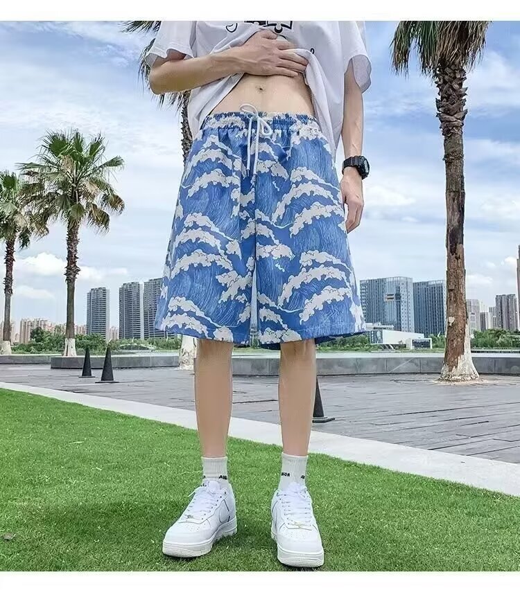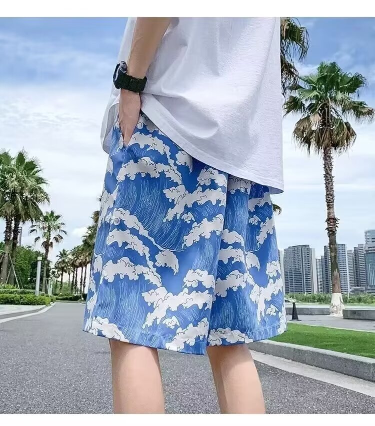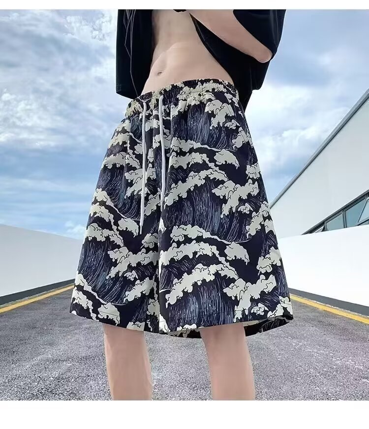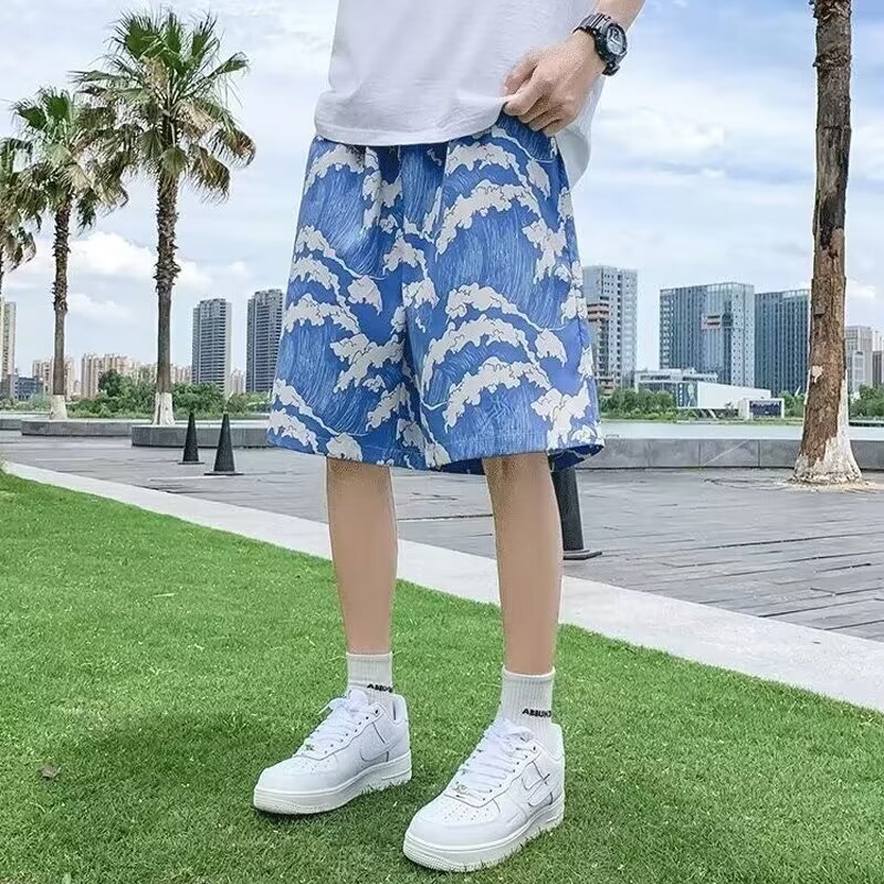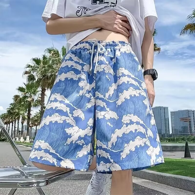 하와이 비 다림질 아이스 실크 빠른 건조 5 점 비치 반바지 남성 캐주얼 인쇄 느슨한 얇은 스포츠 바지스토어 가기