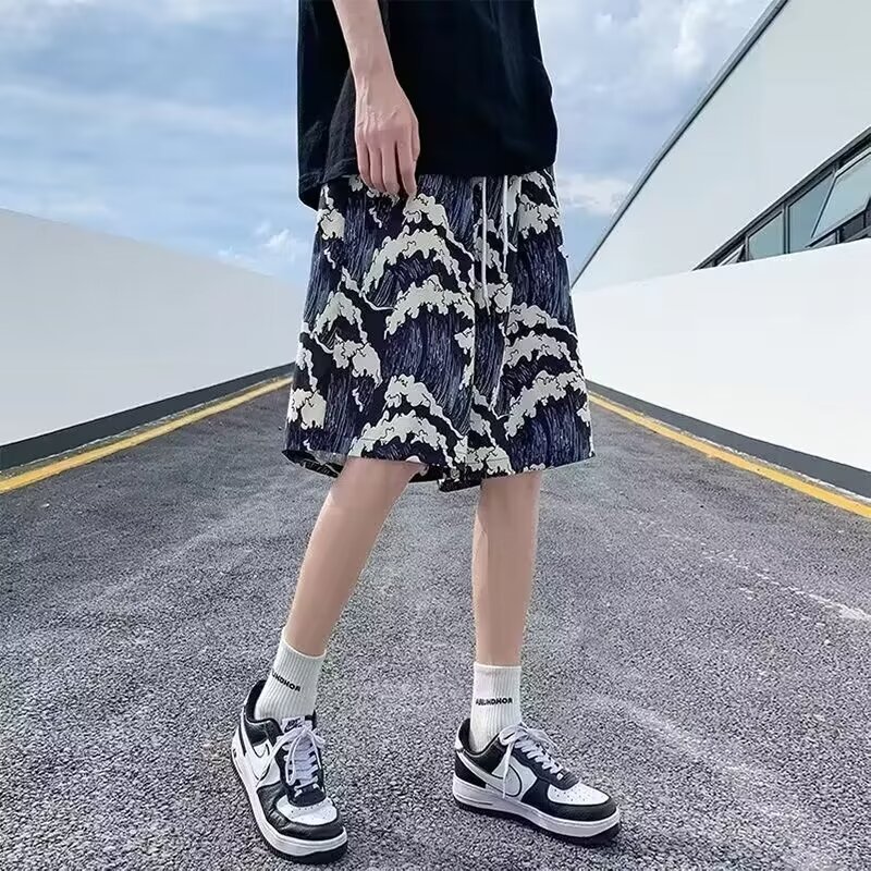 하와이 비 다림질 아이스 실크 빠른 건조 5 점 비치 반바지 남성 캐주얼 인쇄 느슨한 얇은 스포츠 바지