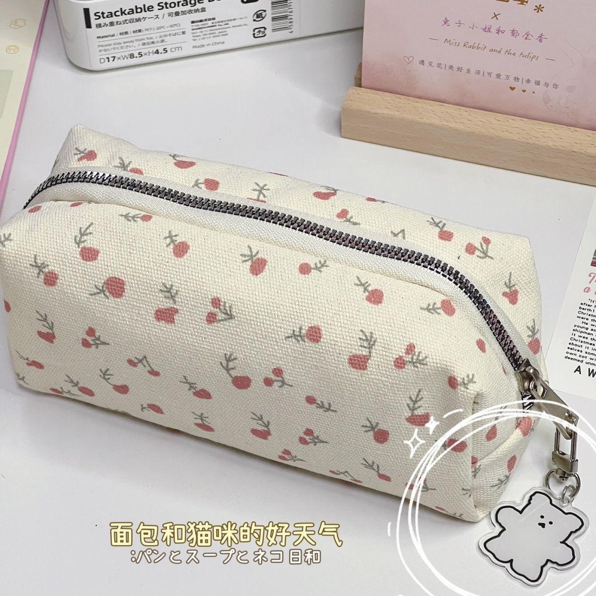 • 크림색 작은 꽃무늬 필통